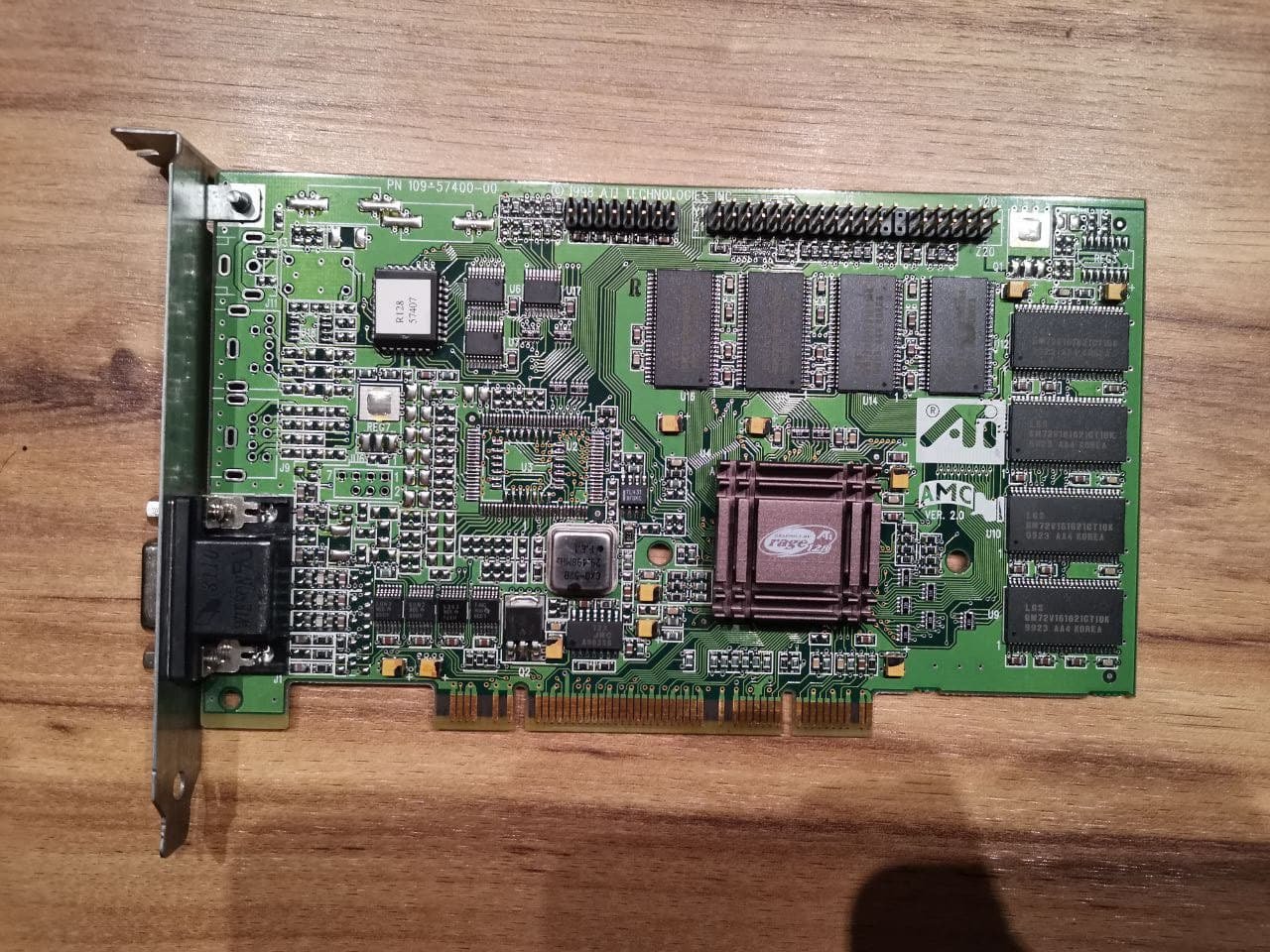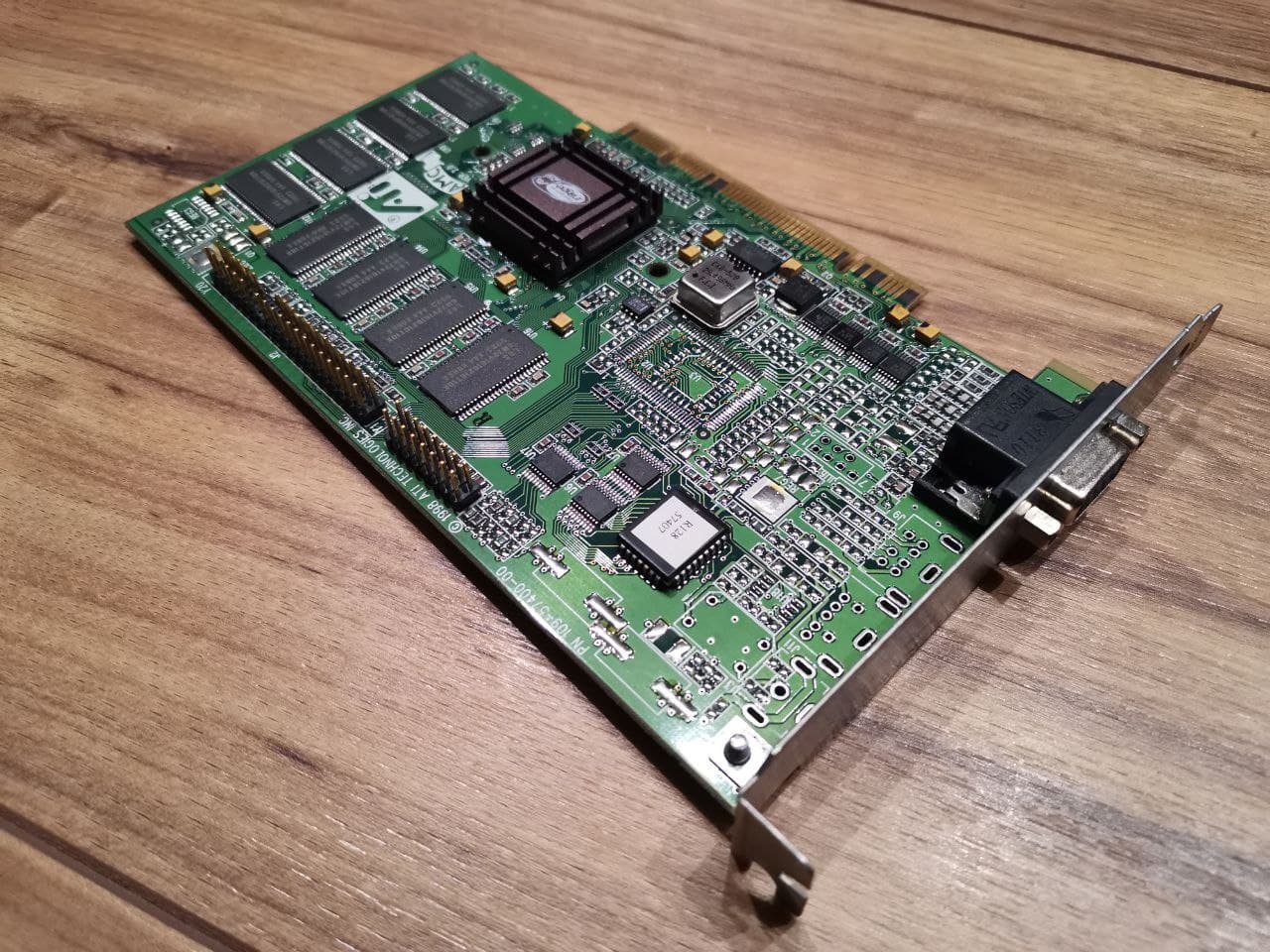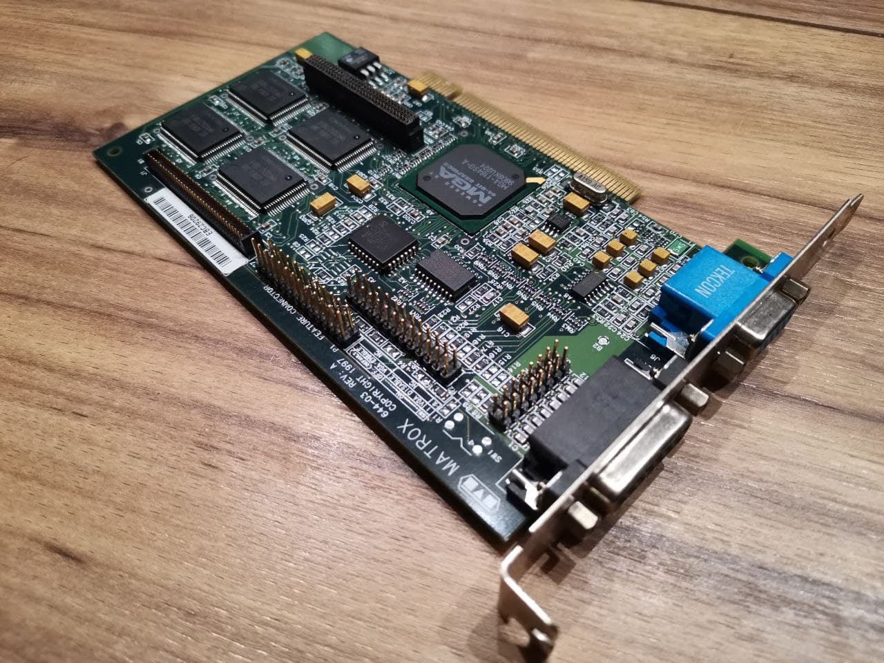 Eine Karte, die aktuell in Benutzung ist, ist die Matrox Mystique 220 Business aus dem Jahr 1997 mit gewaltigen 4MB SGRAM, welche man ĂŒber die auf der Oberseite sichtbaren Schnittstellen erweitern konnte, und