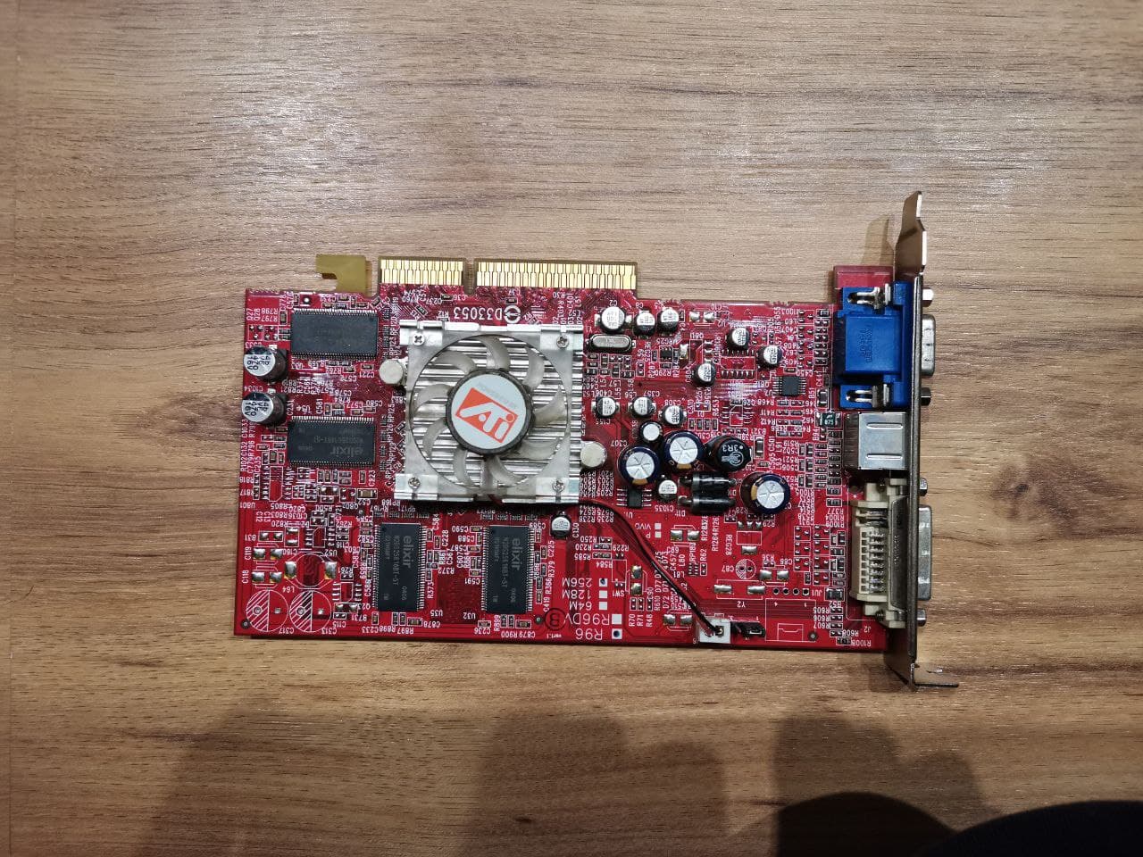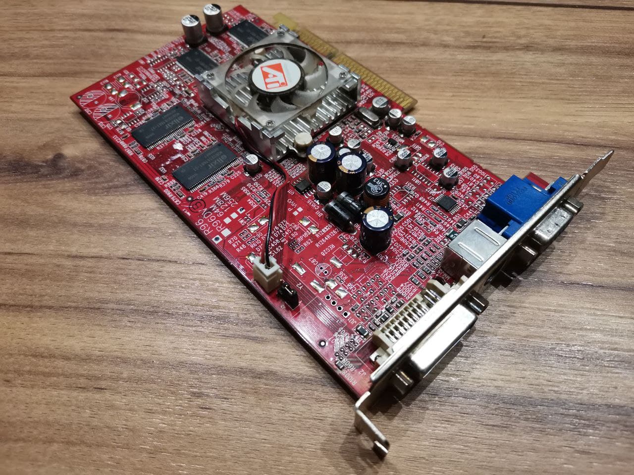 Ein Konkurrent aus dem selben Jahrgang - aus unserem alten Fujitsu-OEM-PC - die ATI Radeon 9600 Family. Der RV350 hat diese Mittelklassekarte mit 256MB bei 400MHz Speichertakt und 325MHz Kerntakt betrieben. Leider Hat der LĂŒfter einen Lagerschaden - vermutlich, weil damals noch in der Wohnung geraucht wurde...