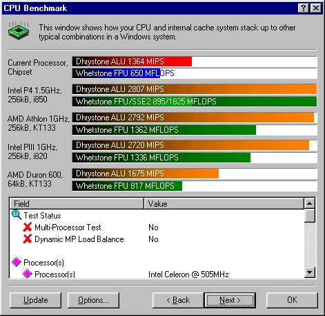 auch in SiSoft2001 skaliert der Celeron hervorragend. Man beachte die Speicherbandbreite!