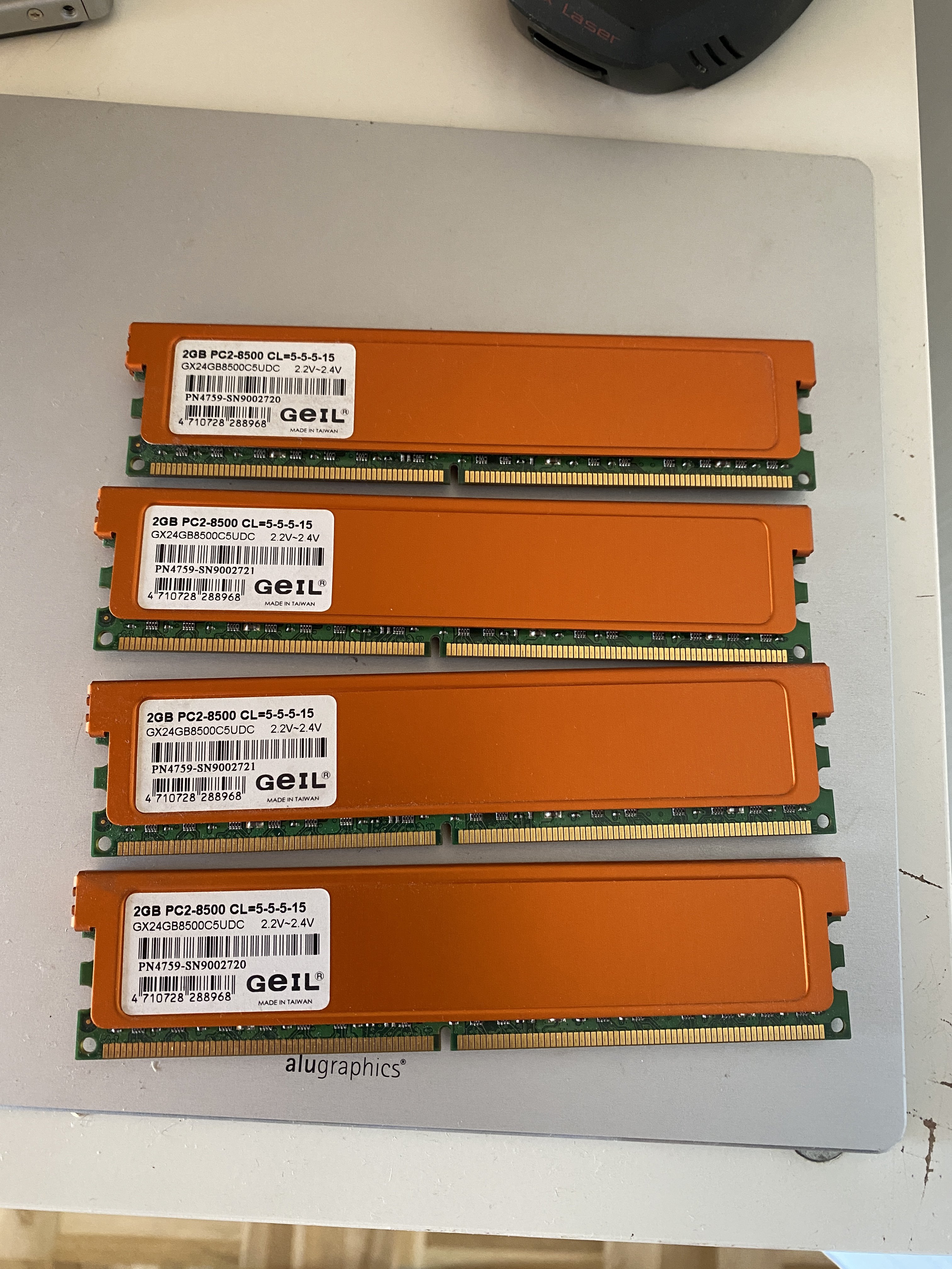 Hier meine X-Fi XtremeGame Faral1ty 64 MB X-Ram und E-SATA und USB 3 Karten und Geil DDR-2 PC8500.