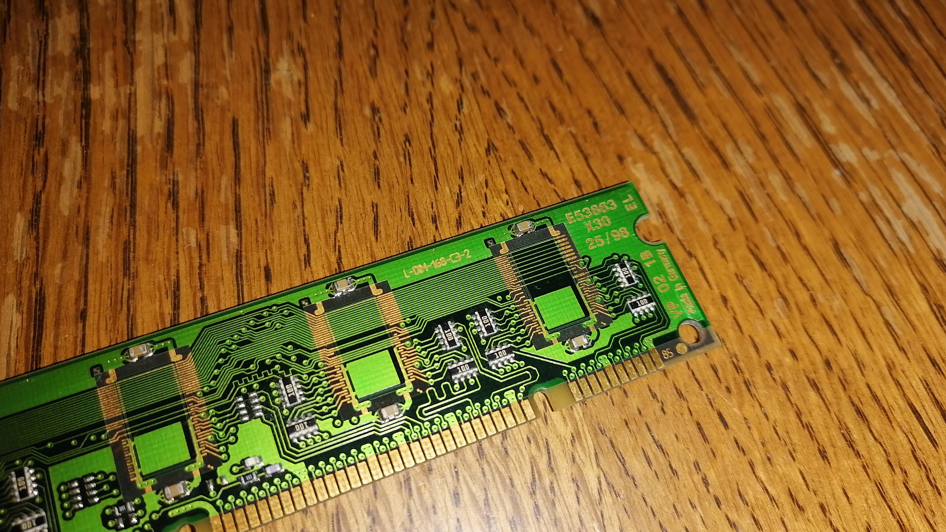 WĂ€re schon cool, selbst bei alten SD-RAM oder gar EDO/FP-Sticks auslesen zu können, fĂŒr welchen Takt und welche Timings sie ausgelegt sind. Es ist teils mĂŒĂig, die Bezeichnungen der RAM-Bausteine zu recherchieren ^^ Wobei's in dem Beispiel hier jetzt nicht so schlimm ist, da steht sogar direkt aufgedruckt auf dem RAM-Chip: 4Mx64 PC100 2-2-2-20.
