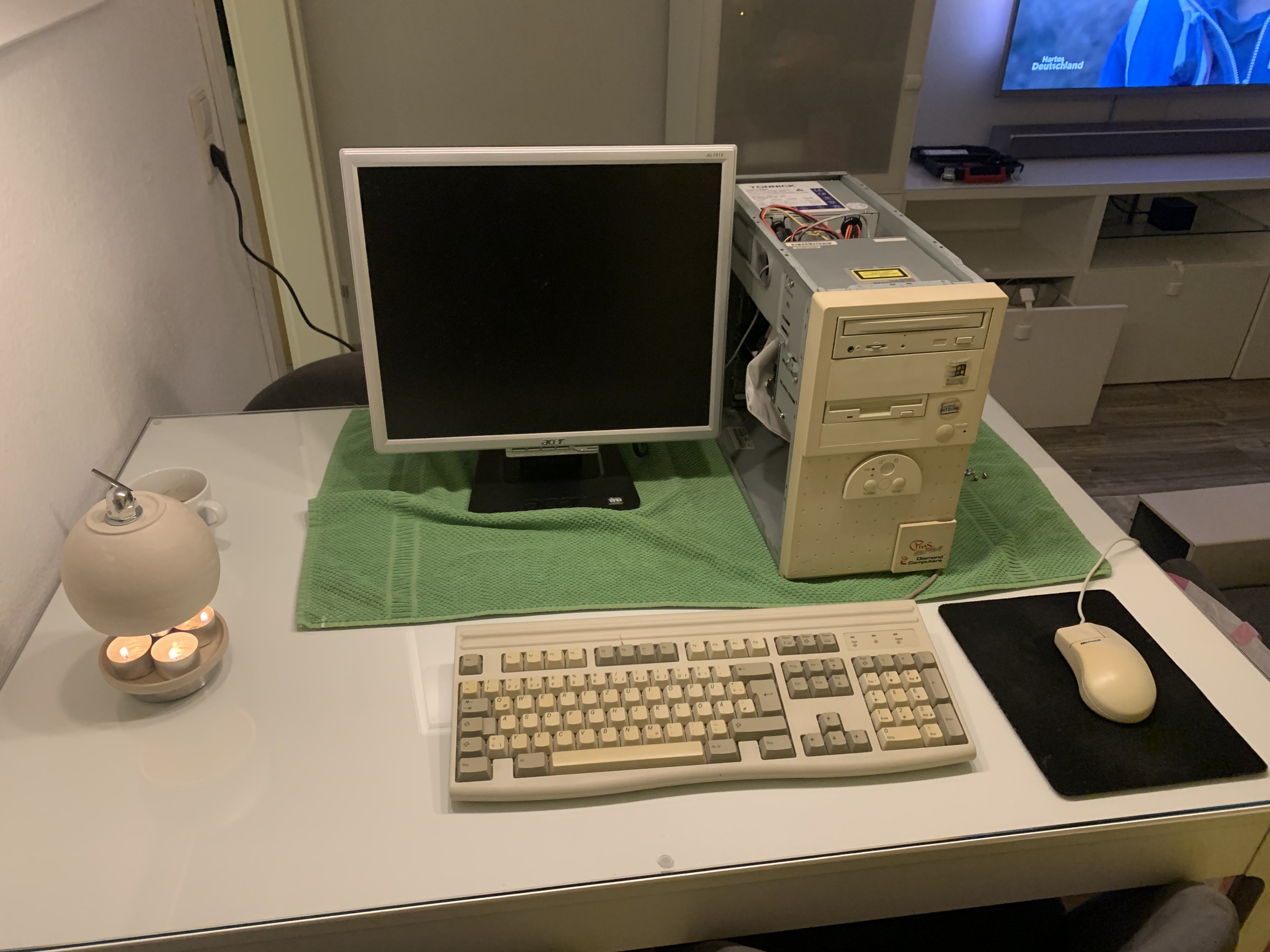 Warum Lucy? Keine Ahnung. Fiel mir spontan ein, als ich damit die Treppe hoch kam. Lucy heißt der PC von diesem durchgeknallten Nerd in „Hackers“, der Film kam so um die gleiche Zeit raus, daher finde ich es ganz passend. Und sich im Jahr 2021 einen 96er Pentium zu kaufen ist schon ganz schön nerdig 😂