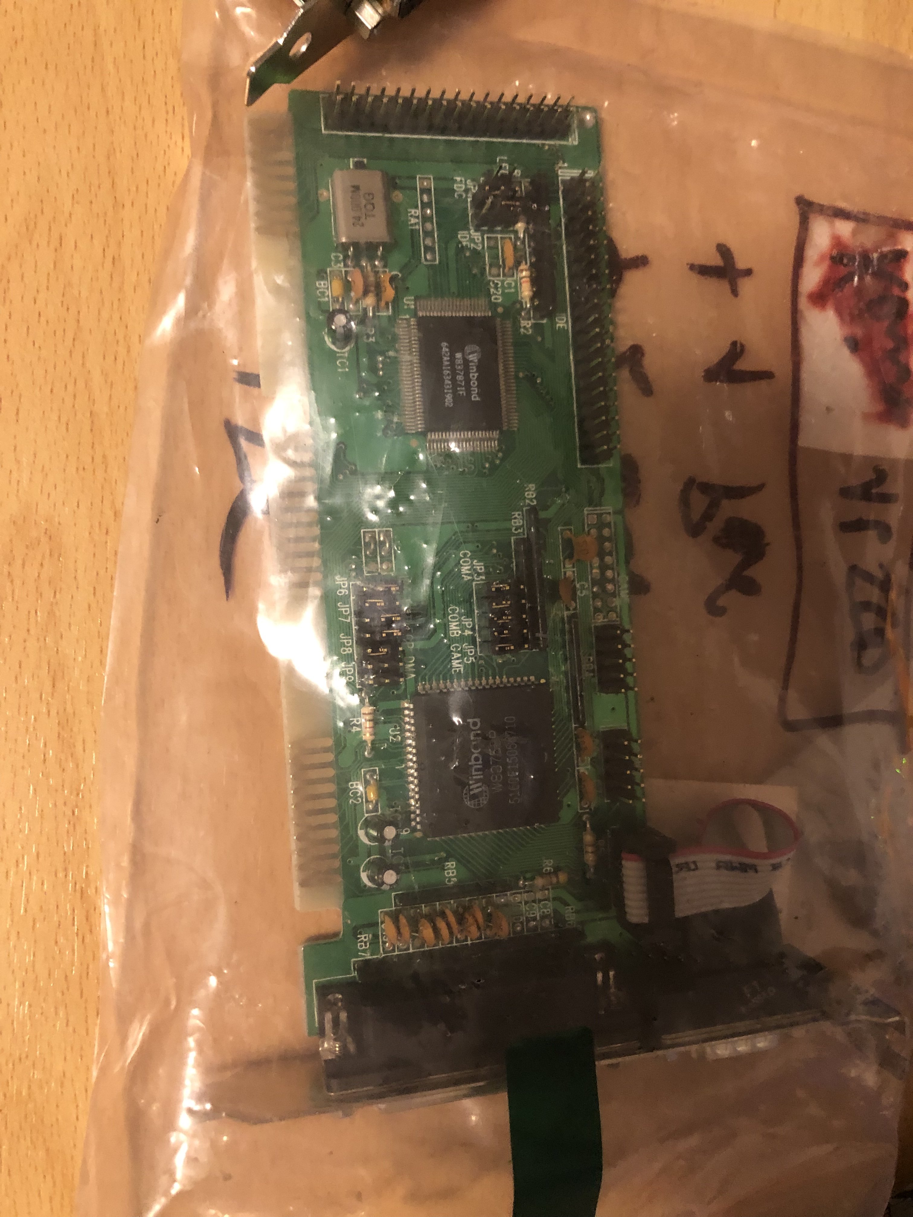 3 ISA GKK´s, 2 ISA Controller Karten, 3 I/O Karten, SCSI Adapter, EDO Ram und noch einen haufen CD/DVD´s die ich erst durcharbeiten muss.