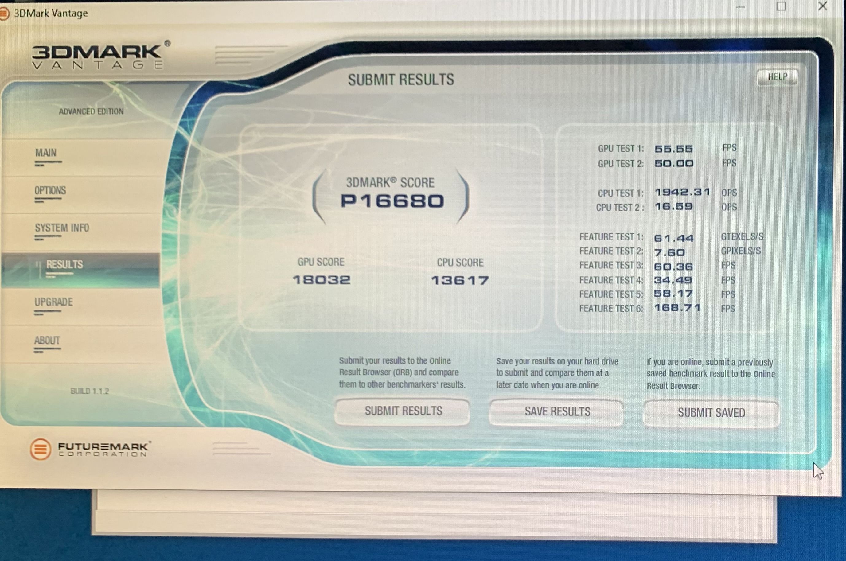 Das 3D Mark Vantage- Ergebnis ist 17930....aua! Ich habe aus Versehen die medusaähnlich hervorquellenden Heatpipes angefasst. Stromfresser, elender!