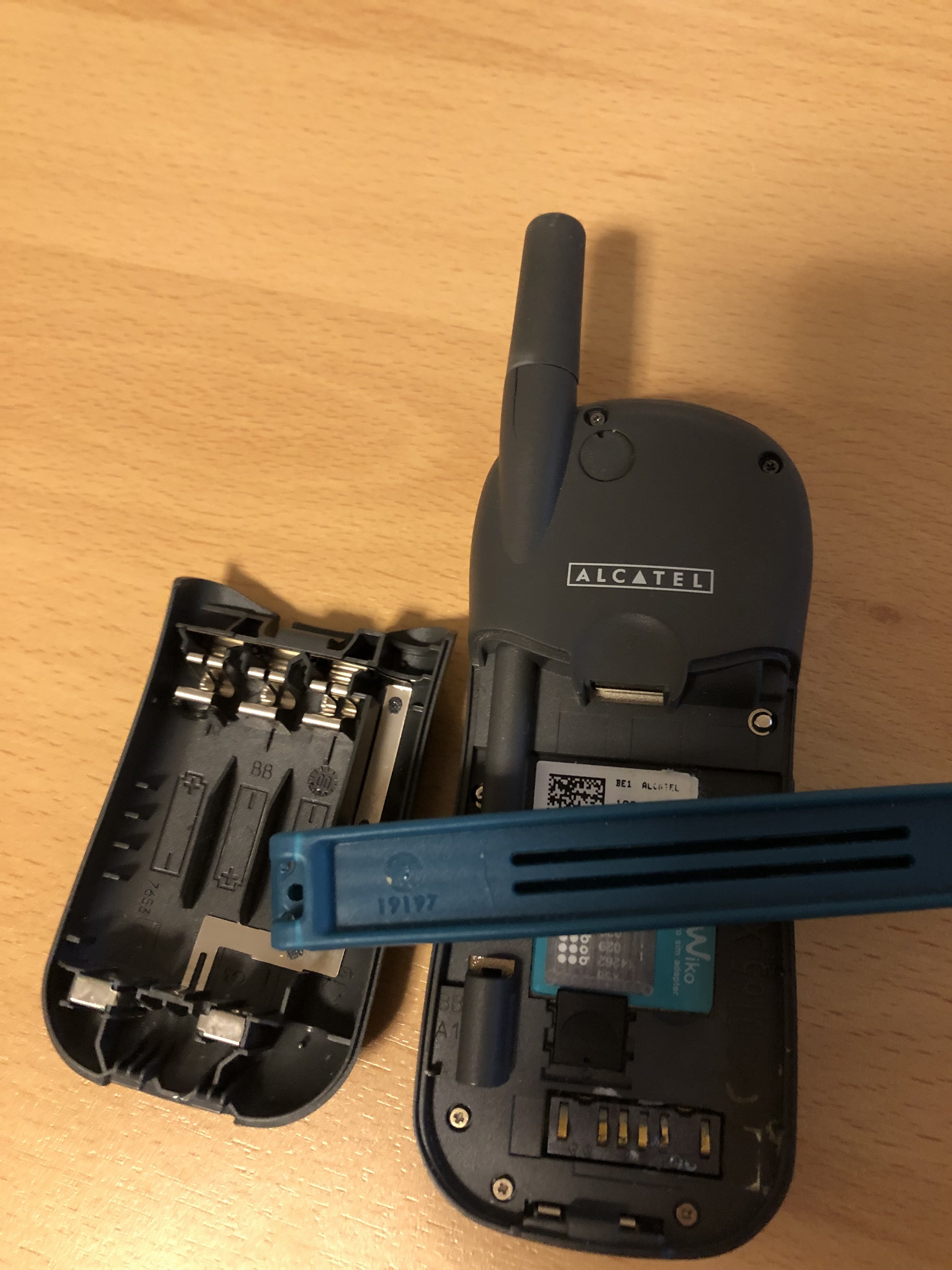 Leider Sim Lock drauf, aber mit den Batterien funktioniert es und es findet sogar ein Netz.