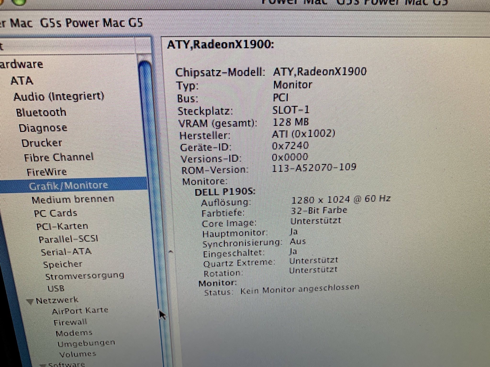Der hier ist die PCIe Version (Late 2005) mit einem IBM Dual Core G5 mit 2,5Ghz, in der original Ausstattung: GeForce 6600 LE, 2x256MB RAM und 250GB WD HDD.