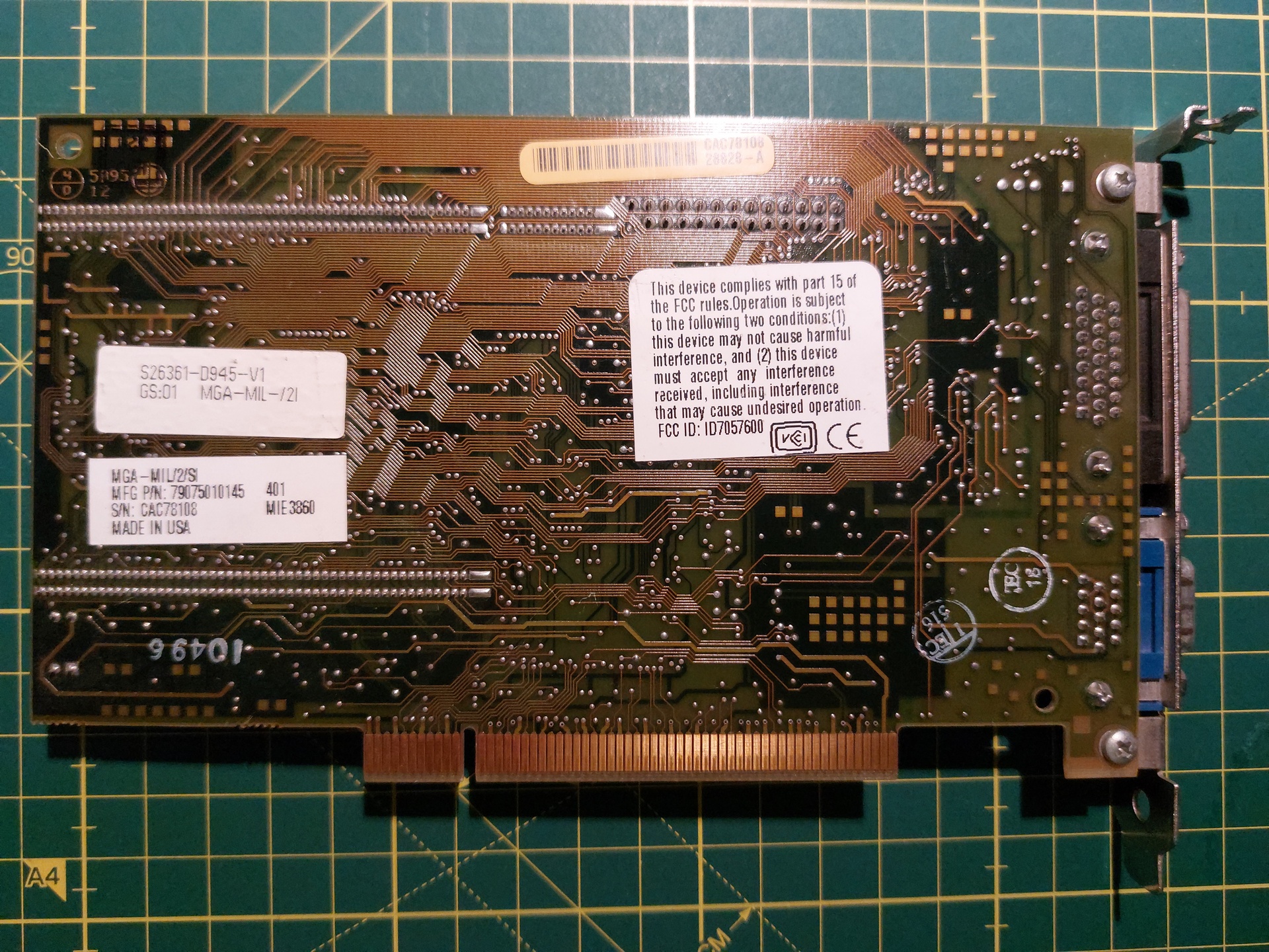 Grafikkarte: Matrox MGA Power Graphics IS Storm R2 2MB - Es dürfte sich nach meiner ersten, kurzen Recherche um eine OEM-Version handeln. 1995. Möglicherweise Vorgängerin der Matrox Mystique.