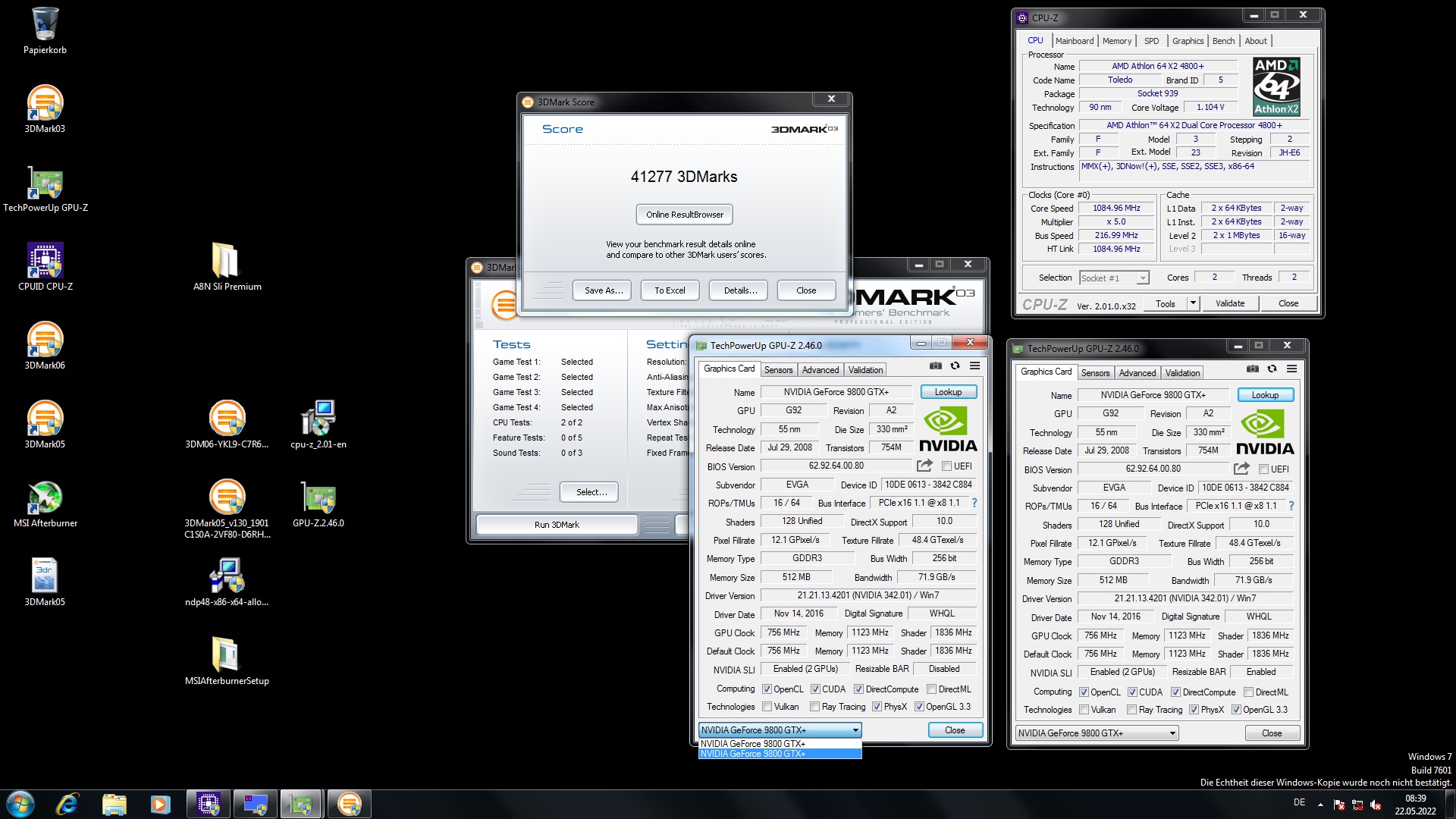 Das hier ist meine Grafikkarten Test Rigg. Ein Athlon 64 4000+ @ Stock auf einem ASRock Dual VSTA, mit 2GB DDR 400, und einer WD Raptor. Als Referenz sitzt da eine Geforce 8600 GT von XFX drauf, weil ich demnächst eine Benschmark Session mit mehreren GrKas machen werde...