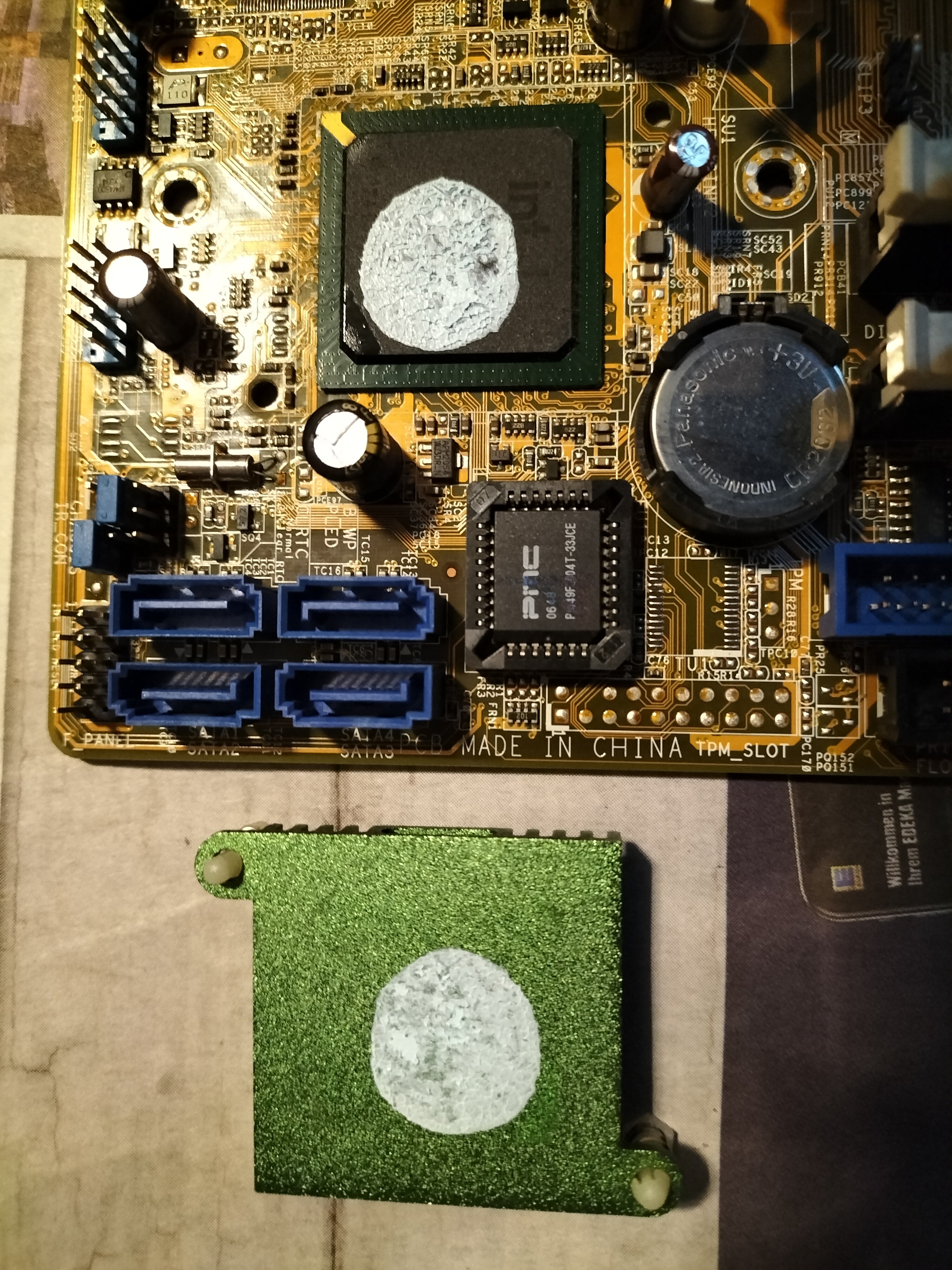Das ist übrigens das gute Stück, komplett ertränkt in WLP - das wird ne Sauerei das alles sauber zu machen, da ist ja ne richtige Schicht drauf