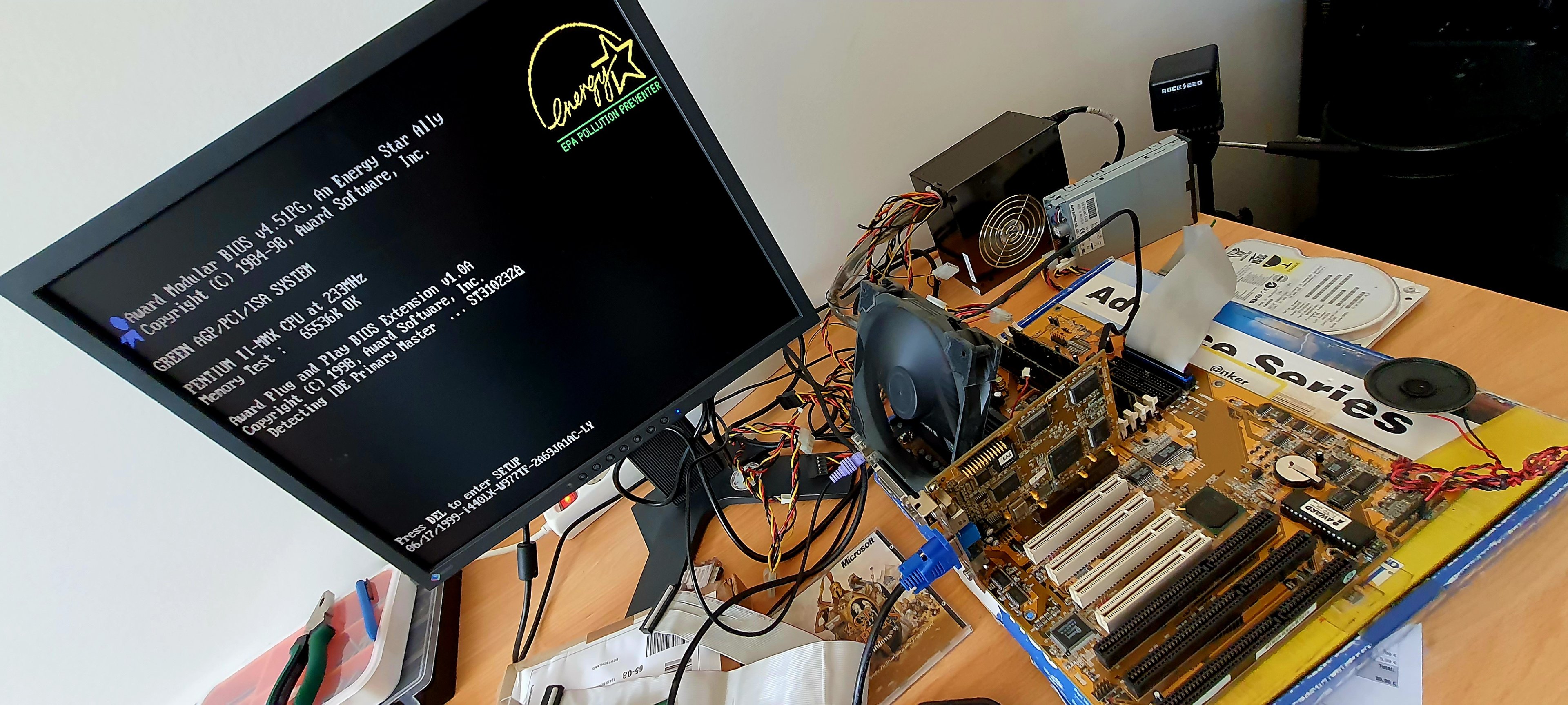 Kurzer positiver Testlauf mit dem Abit Board und der Riva128.