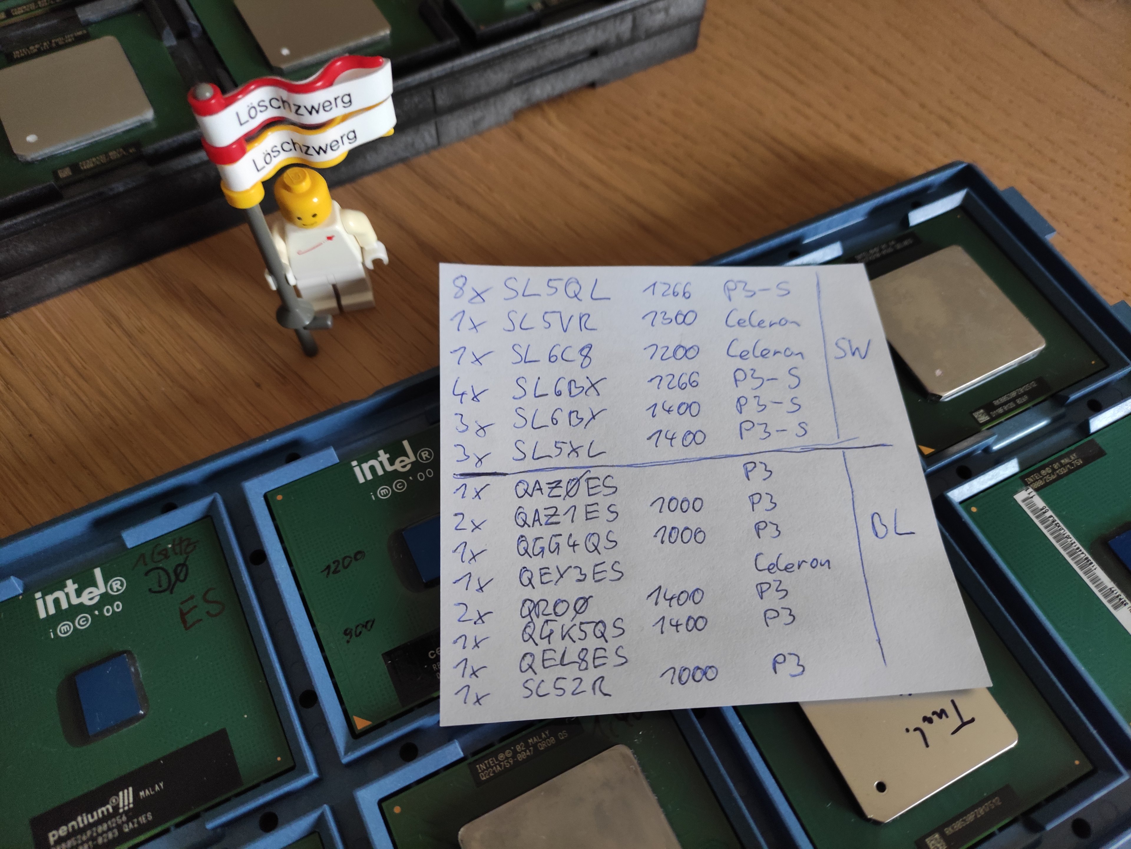 Ich habe gestern und vorgestern meine Intel Sockel 370 Sammlung sortiert/katalogisiert inkl. grober Säuberung. Ein paar Streuner geistern noch in Kisten verbaut auf Boards herum, aber das dürfte es halbwegs gewesen sein.