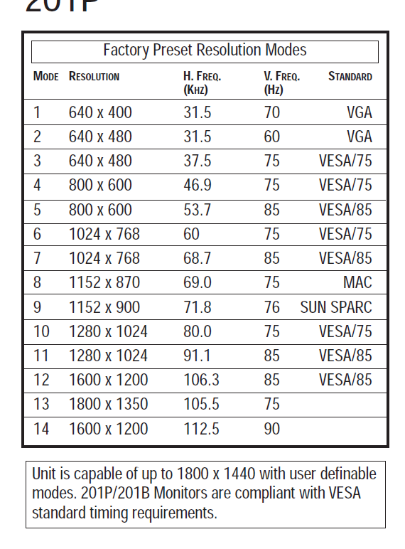 Ist aber kein VESA standard. Da gibt es nur 60, 70, 75 und 85 bzw. bei 1600x1200 noch 65Hz.Karre schrieb:Die Röhre ist ne Möhre ... 185Hz bei 1024x768