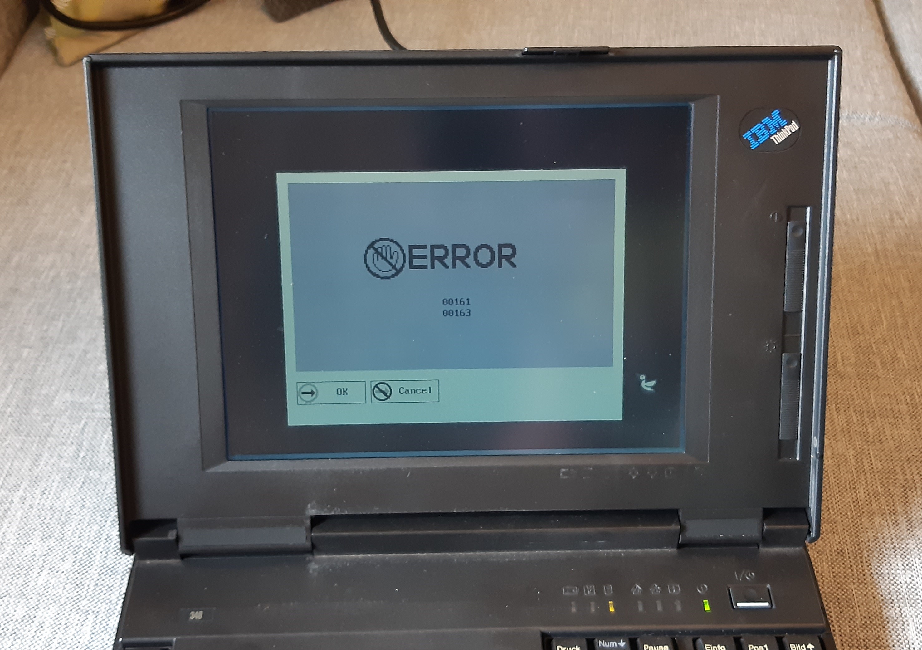 Gleichmal eine Fehlermeldung beim Hochfahren und dieses Modell hat noch ein Monochrom-Display: