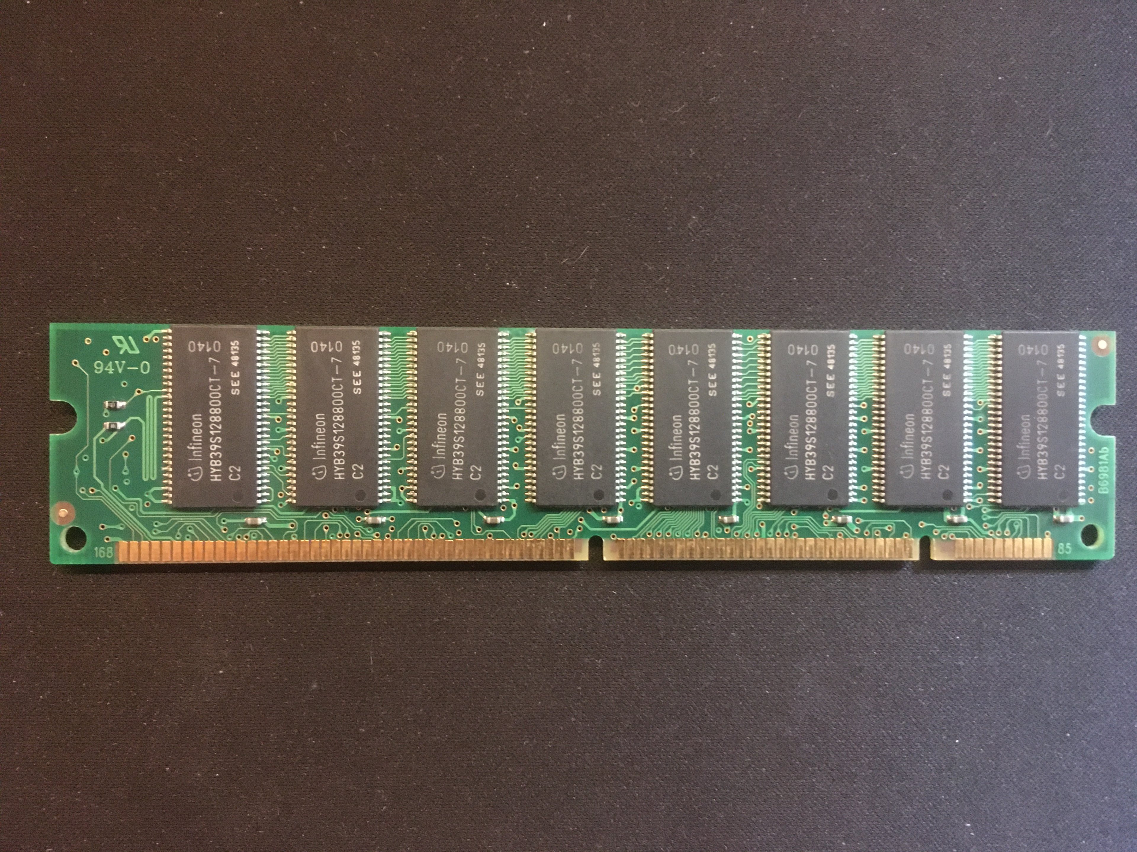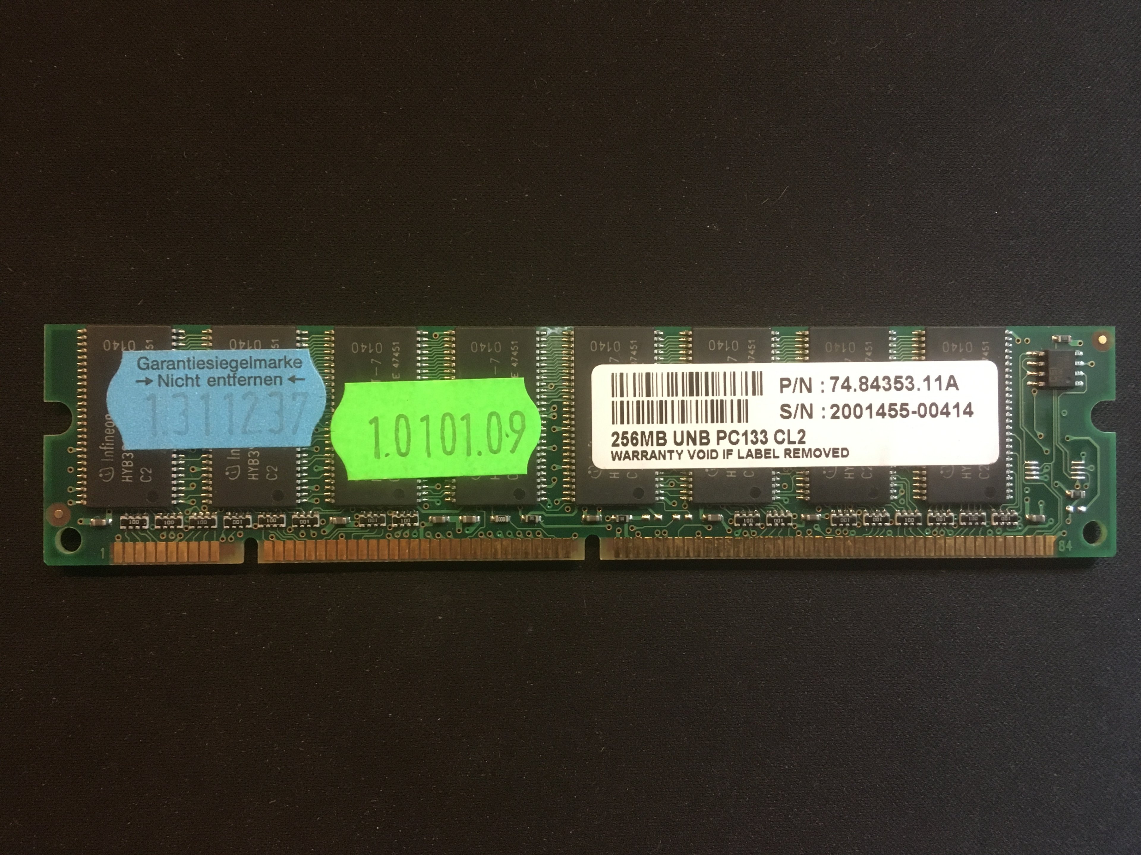 Traue mich wegen der fehlenden Etikettierung nicht den irgendwo mal zu testen. In meinem alten P3 Server sind halt auch zwei PC133 512MB Samsung CL2.5 ECC SDRAMs verbaut. Und ob Win2k3 noch startet, wenn das nur 128MB sind, weiß ich auch nicht.