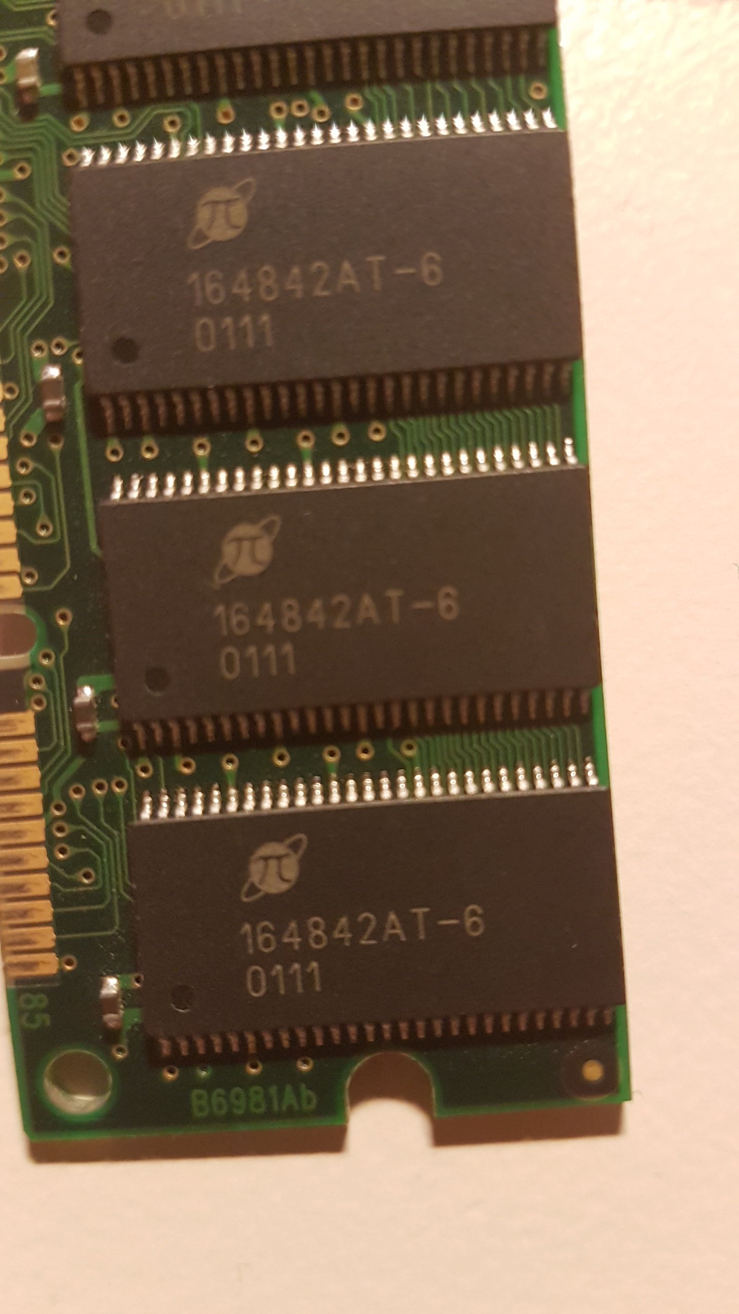 Da anscheinden keiner helfen kann, versuche ichs. Vermutlich kann ich nicht wirklich was dazu beitragen. Das PI Logo kenne ich nicht. Die Nummer vom PCB fängt mit Bxxxxx an. Würde hier auf Brainpower PCB tippen. Bei den Chips wird es schwerer. Die Position vom Pin1 Punkt her ist es etwas selteneres. Bei DDR1 Chips hätte ich auf PSC oder Nanya getippt. Bei SDRAM wüßte ich nicht. Hast du Bilder von der Seite der Chips?