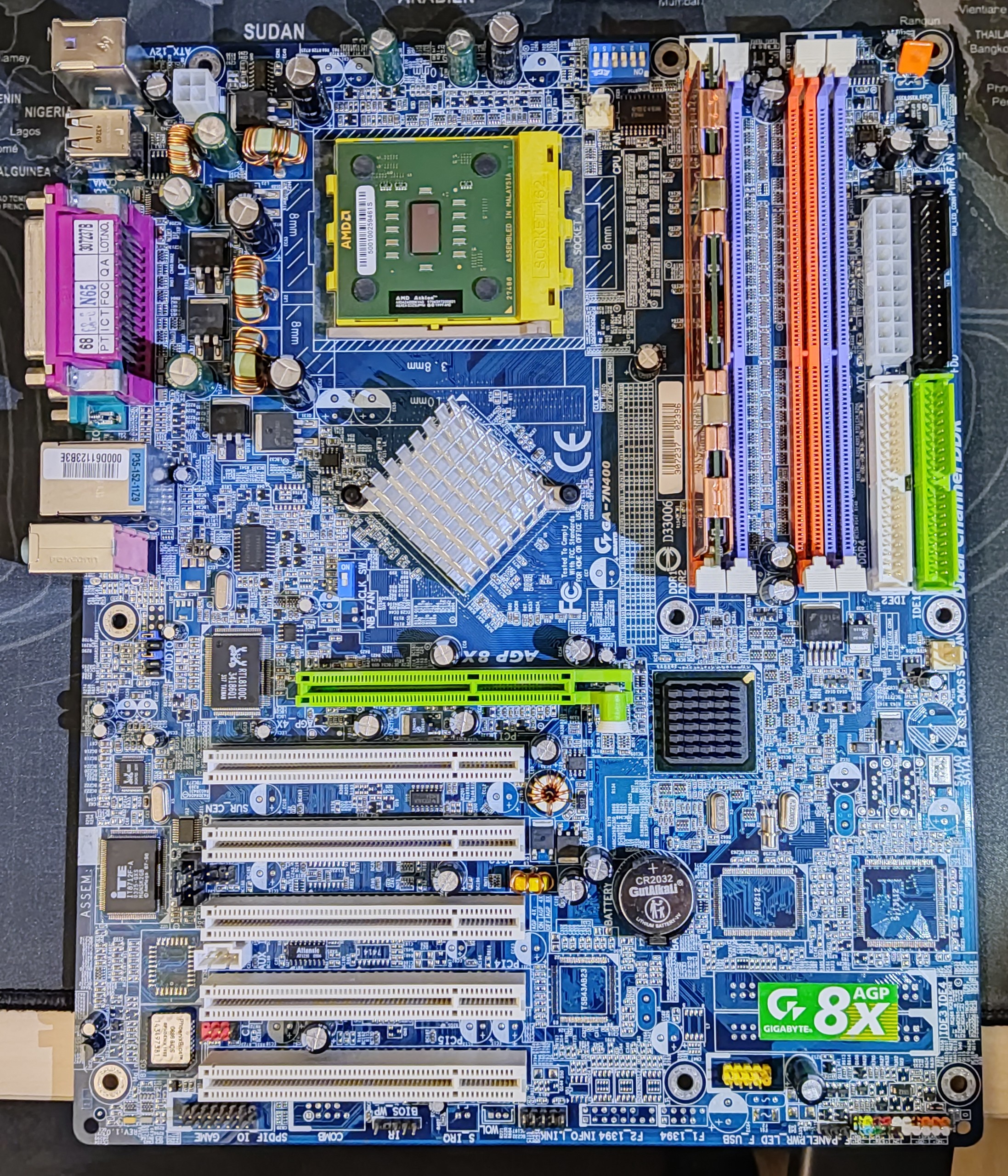 Die meisten Boards sehen echt okay aus! Einzig bei den vier Bildern hab ich was entdeckt: Das obere Board mit den orange-farbenen IDE-Anschlüssen könnte evtl zwei defekte Caps zwischen den Ram-Riegeln und besagten IDE-Anschlüssen haben. Die Stelle ist allerdings etwas überbelichtet, daher kann ichs nicht 100%ig sehen.andreasdie schrieb:ich habe mal versucht,so gut wie ich es kann, Bilder meiner alten Boards zu machen um mal die Kondensatoren zu sehen.