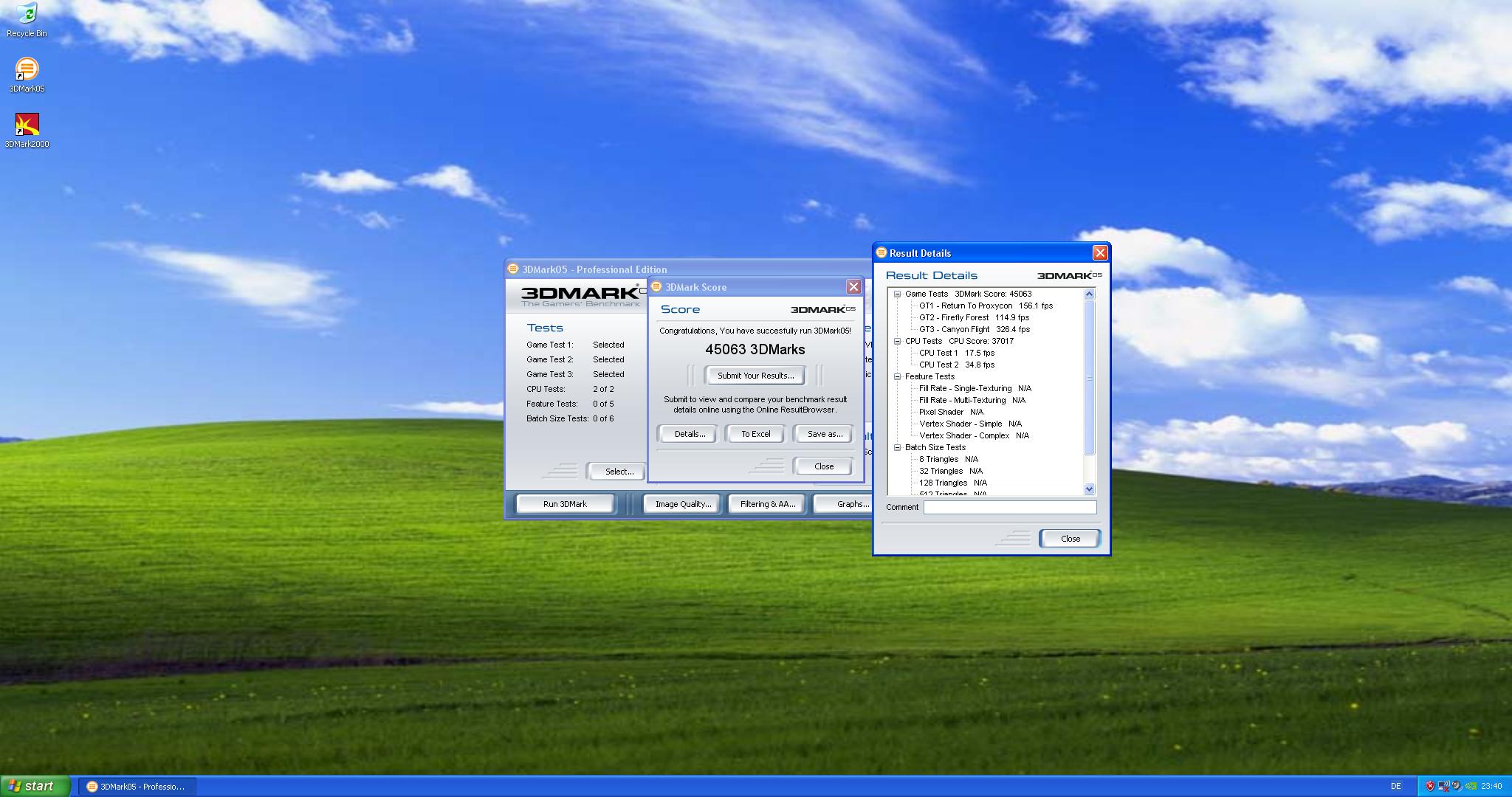 Die CPU Leistung in 3DMark 05 ist unterirdisch und die Unigine Teile wollen nicht starten
