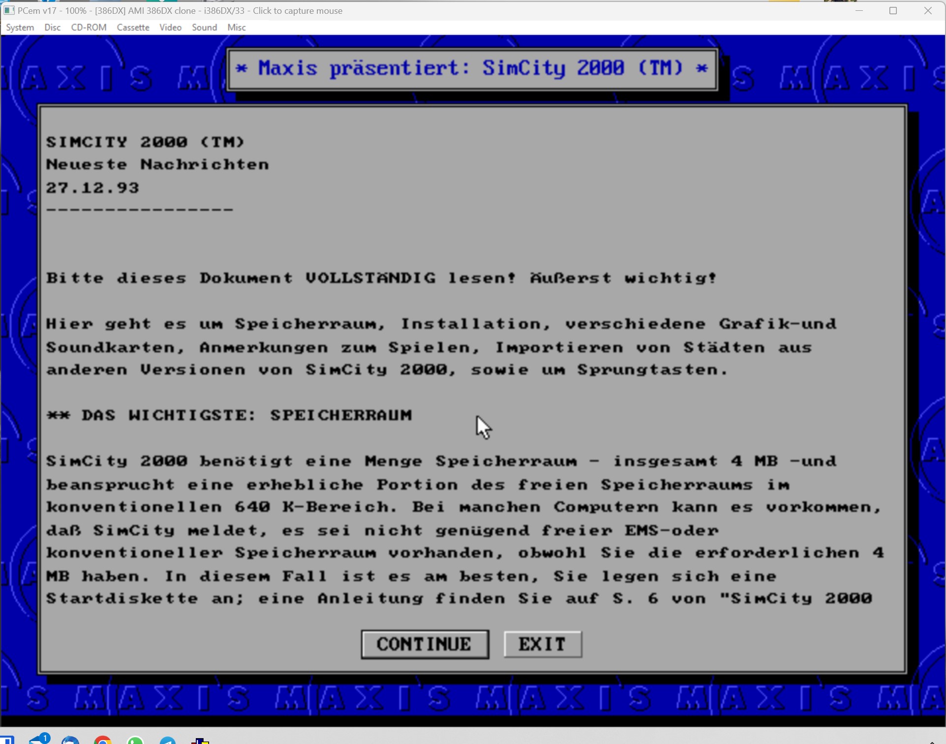 Auf dem simulierten 486 DX4 100 macht es richtig SpaĂ, da bin ich gestern ein paar Stunden versackt.