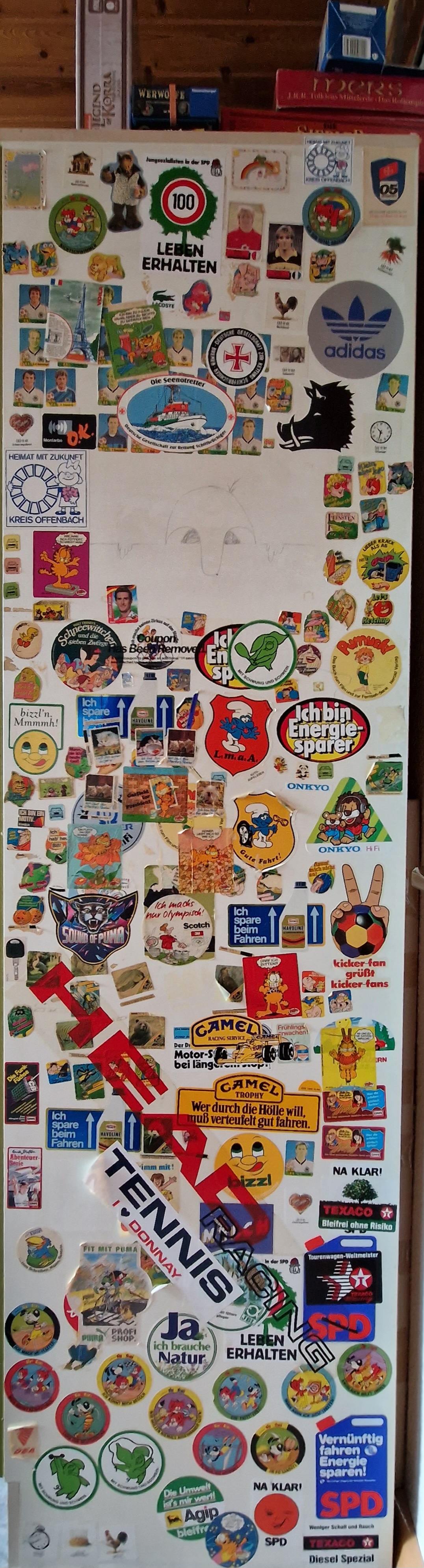 Wo wir es von alten Stickern hatten, so eine Phase hatte ich auch mal wie gut zu erkennen am alten Jugendschrank (inkl. einiger Helden der WM '86): Anhang anzeigen 1408723