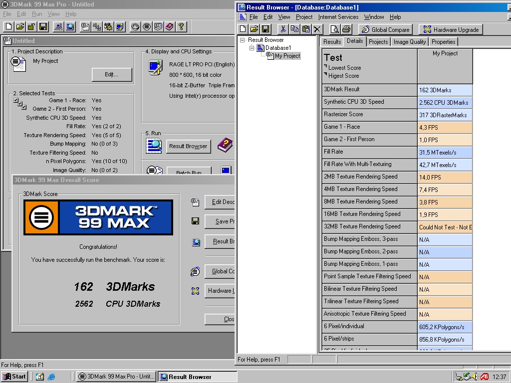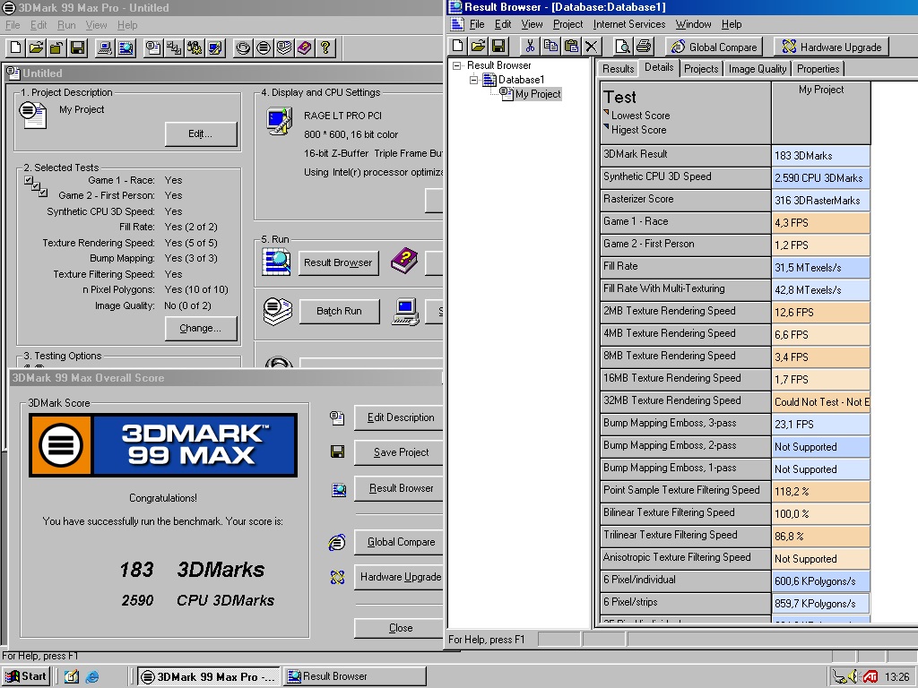 Der Sprung von 800x600 aus ist enorm und in meinen Augen unüblich, was auf einen Flaschenhals bei der Rage LT Pro PCI bzw. Systemanbindung hindeutet.
