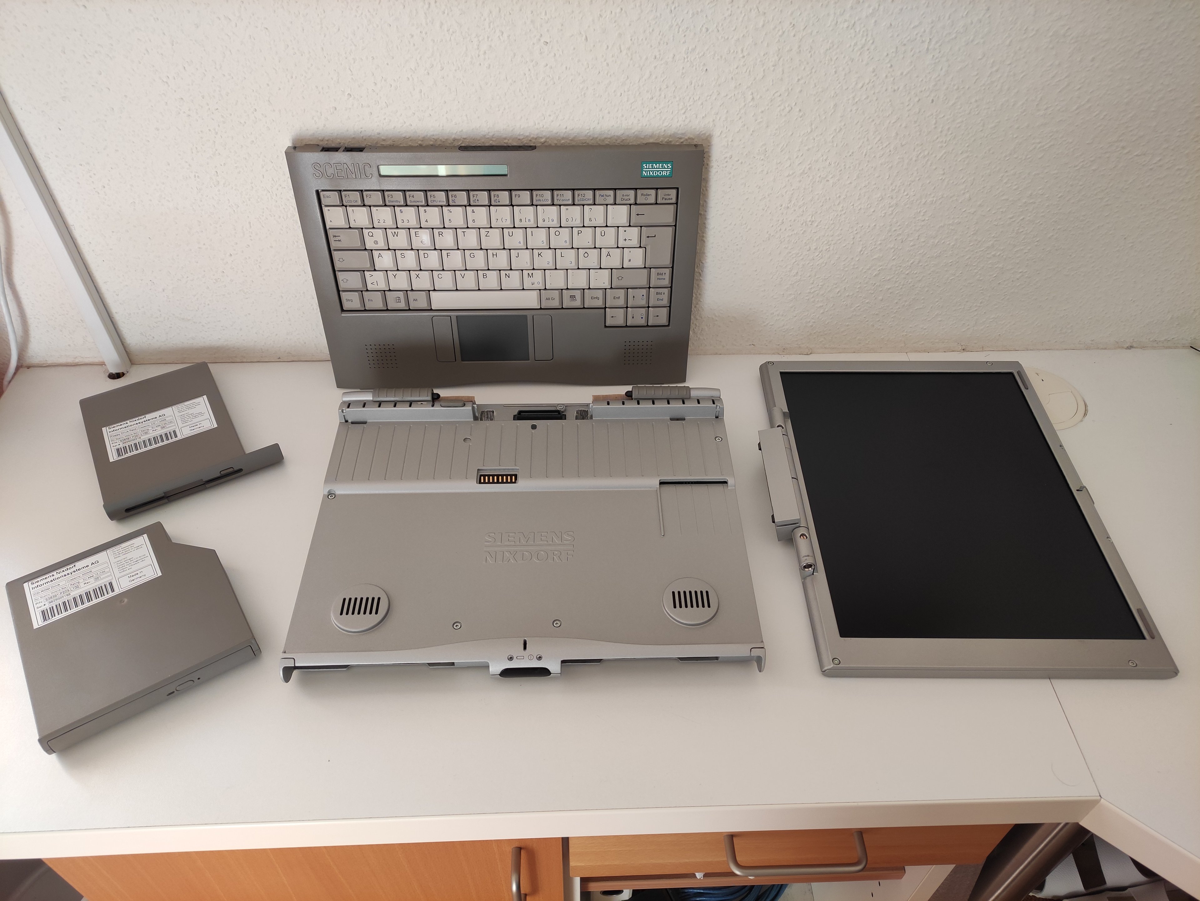 Für das Scenic Mobile 800 gab es zumindest ein paar Optionen für die Einschübe in der Front: Akku, Floppy, CDROM, LS120