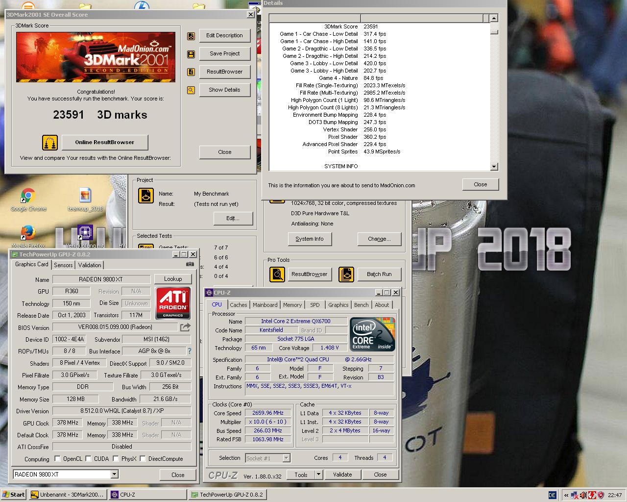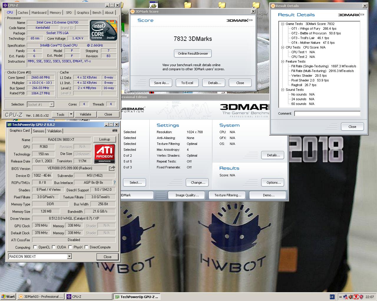 Wie erwartet ein R360 drunter. Damit ist diese Radeon 9800 "Pro" eigentlich eine umgelabelte "XT", wie man anhand des GPUZ Screenshots ja auch sieht.