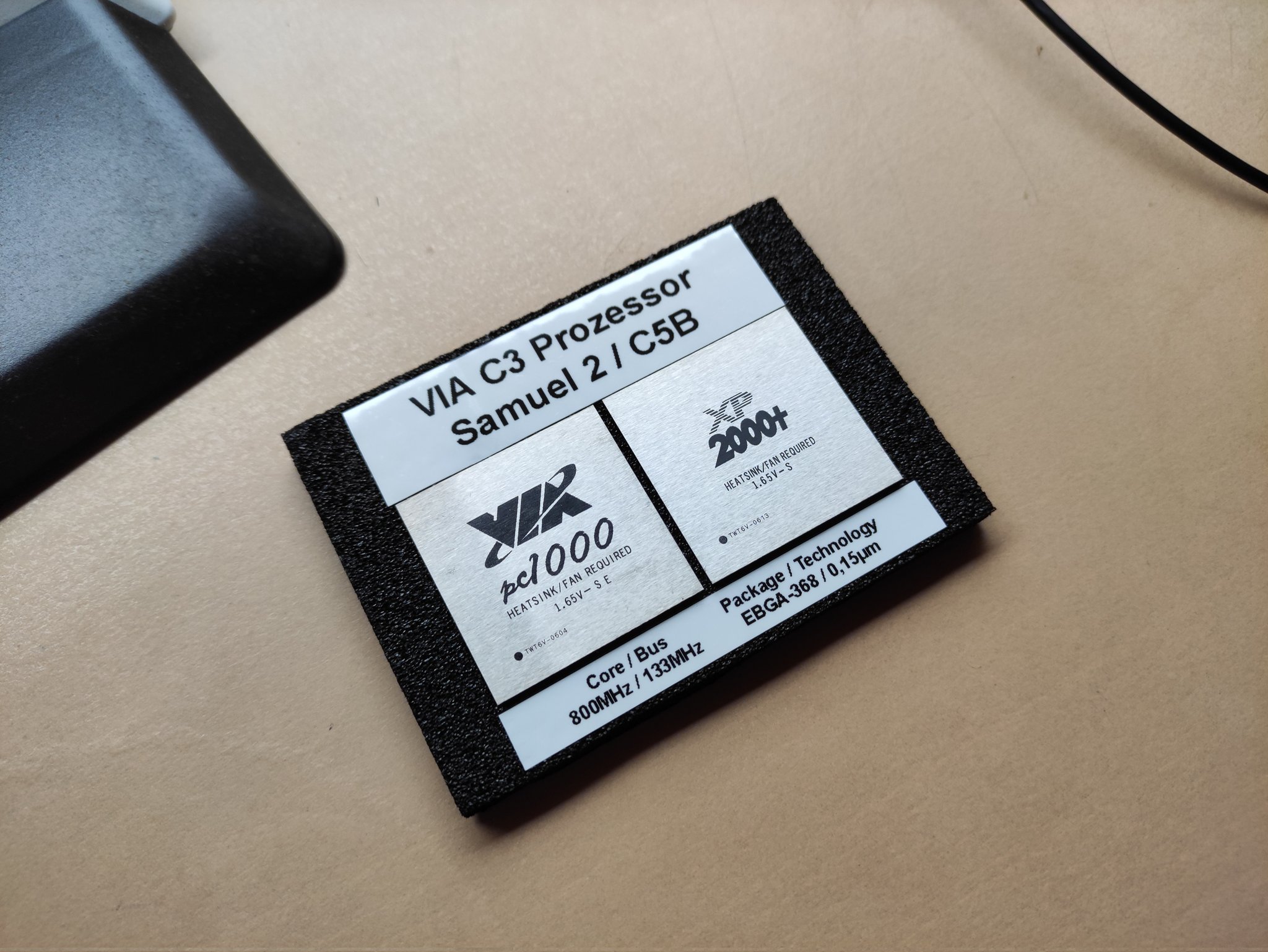 Zwei Neuzugänge in meiner Sammlung, ein VIA pc1000 und XP2000+. Beide stammen aus der C3 Serie und basieren auf der 2001 erschienen "Samuel 2" (C5B) Architektur.
