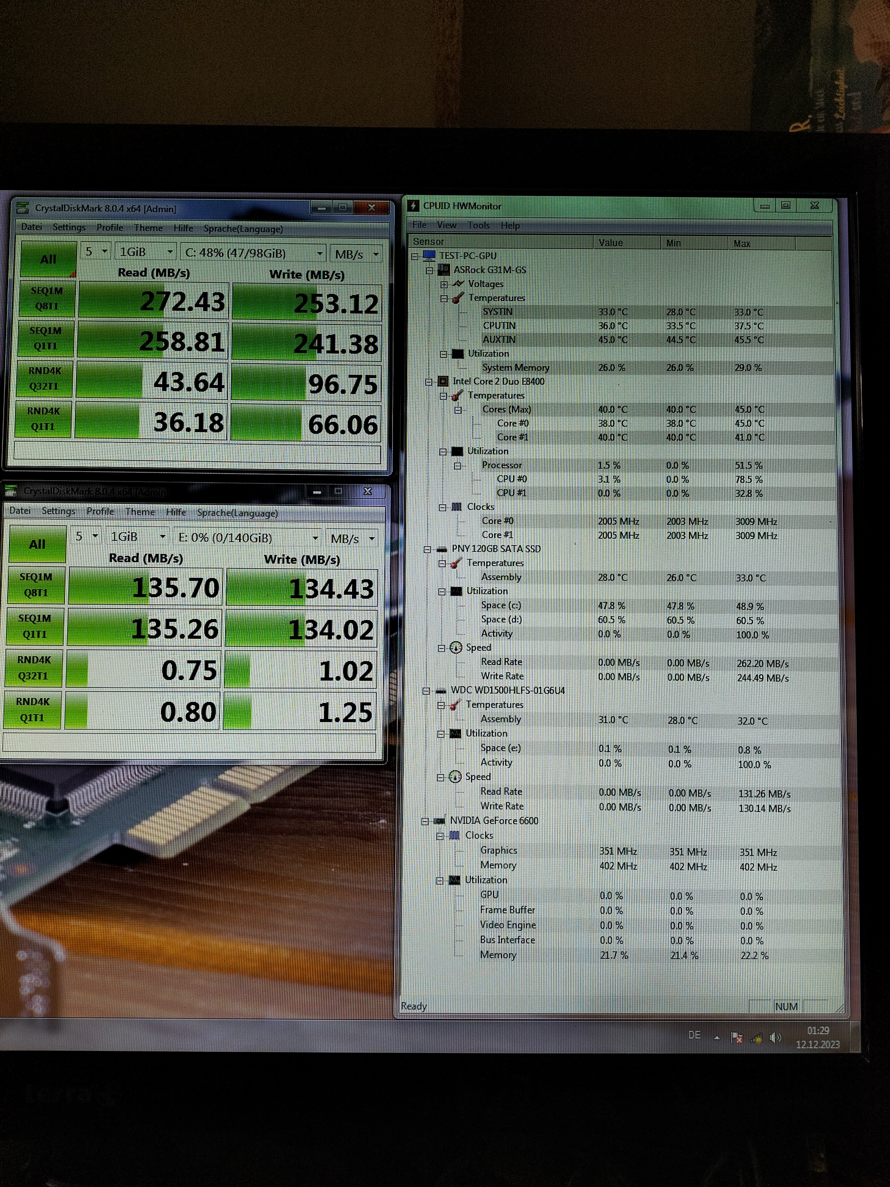 Der verbaute Core 2 Duo E8400 läuft komplett Passiv in Prime95 bei 72°C - kein schlechter Wert