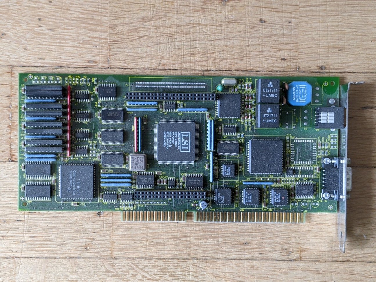 Der LSI Chips ist ein lr33000mc-24 RISC Prozessor und das Board hat 1MB RAM über 8x tc514256az-70 von Toshiba. Verarbeitung und Stil deuten auf Siemens hin. Möchte jemand das Ding haben? Entweder zum spielen oder als Teilespender?
