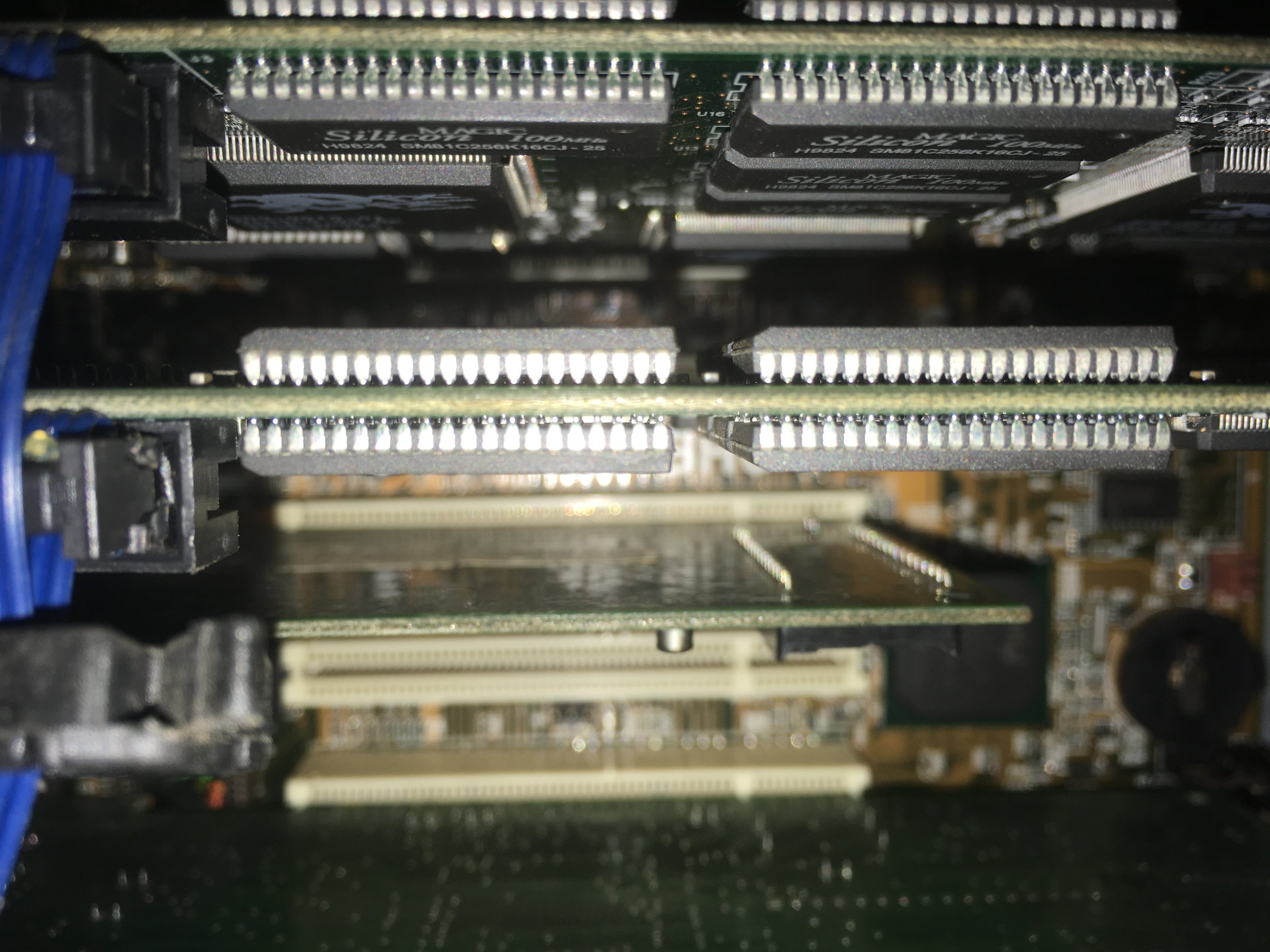 Ich habe den Bildschirm vom 386er Notebook (#1.774) mal geöffnet. Hab gehofft, dass das Problem nur ein einfacher Wackelkontakt ist, aber es sieht nicht danach aus. Es kommt einfach kein Signal an. Egal an welchem Kabel ich rüttel oder welchen Stecker ich neu verbinde...