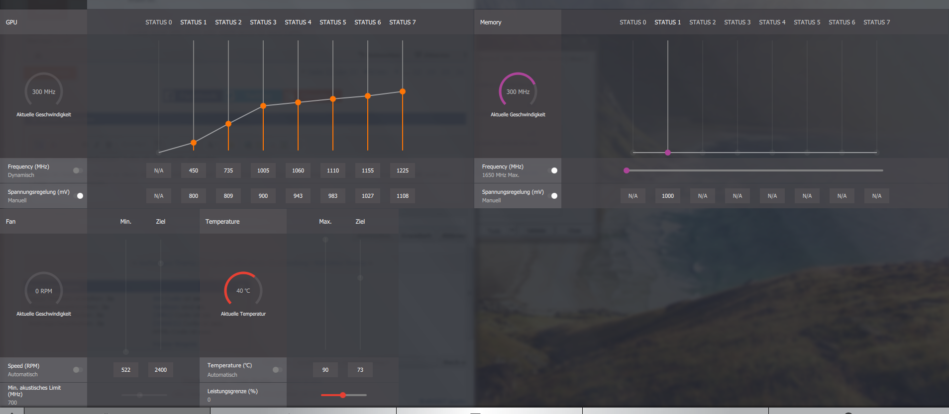 Innerhalb des Powertargets kann man die Leistung aber ebenso erhöhen, wenn man die Spannungen für die verschiedenen Taktraten reduziert. Die Spannung hat einen sehr viel größeren Einfluß auf den Stromverbrauch als die Taktrate, und letztere ist auschließlich für die Performance verantwortlich. Es gilt also für die innerhalb des PT erreichbaren Taktraten zu erhöhen, indem man für die einzelnen States die Spannung verringert. Quasi am Effizienzmaximum takten, aber man sollte ebenso darauf achten nicht allzu viel Stabilität zu opfern.