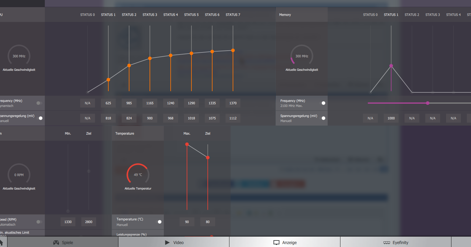 Die GPU scheint mit 1370 MHz @1,15V (Standardspannung) stabil zu sein, unter Firestrike und Crysis.
