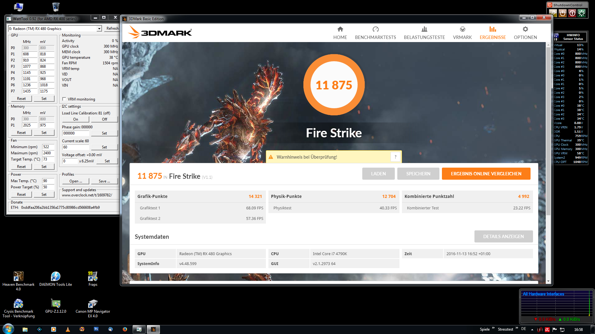 Mit 1435/2125MHz habe ich auch 1200 Punkte mehr, aber das ist halt ein Benchmark, kein Spiel.
