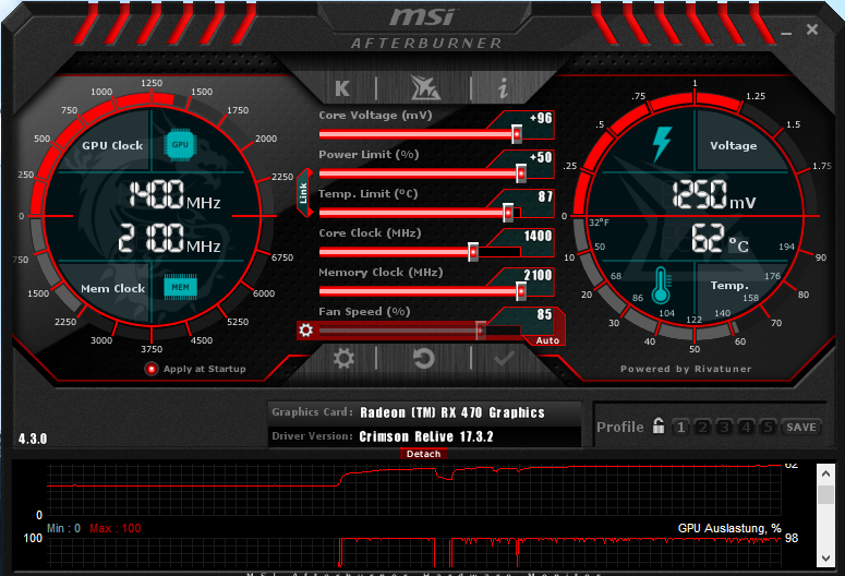 Der PC muss ja nicht direkt mit Grafikfehlern abstürzen, das heißt nur dass das Setting absolut instabil ist und die Funktionen der Grafikkarte nicht einmal im Windows betrieb aufrechterhalten werden kann.