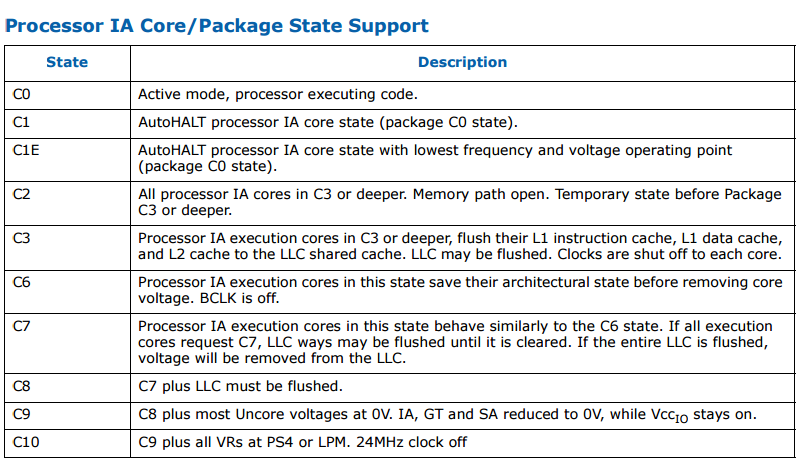 C8 legt die CPU dann einfach nur die Kerne schlafen, wenn sie nicht gebraucht werden. Hat auch keinen Einfluss auf die Stabilität, die C-states schalten sich erst bei 800 Mhz ein.