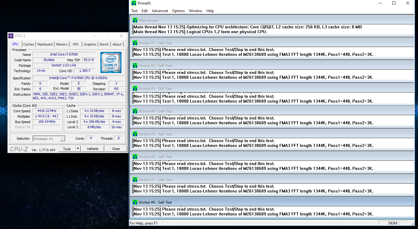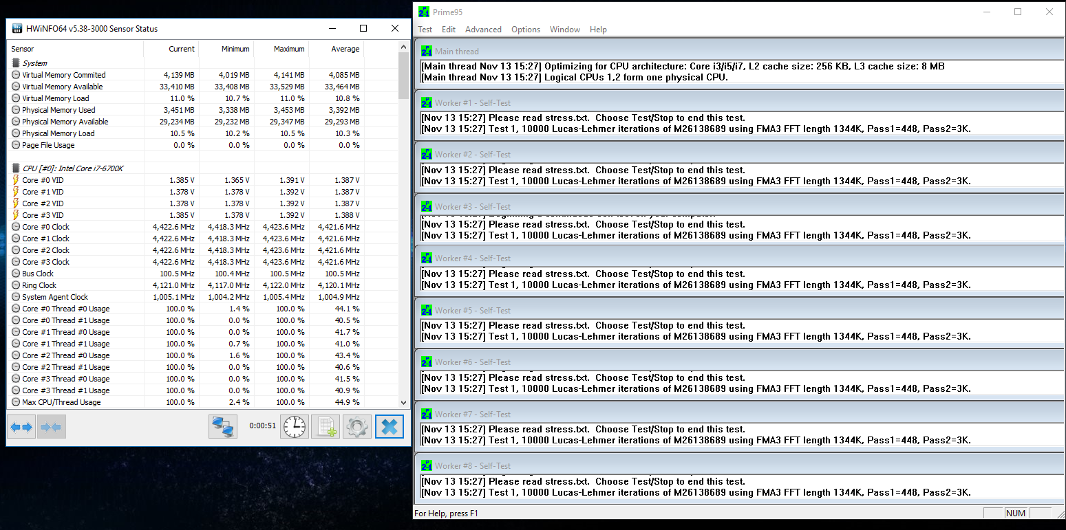 wenn ich cpuz einmal starte steht core voltage da da bleibt der wert auch konstant auf meinem eingestellen. schließe ich cpuz und starte dann prime 95 noch mal steht da