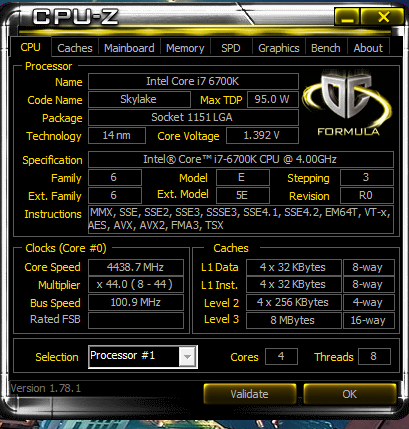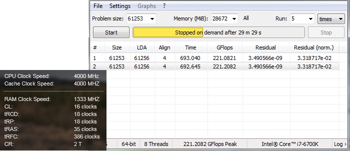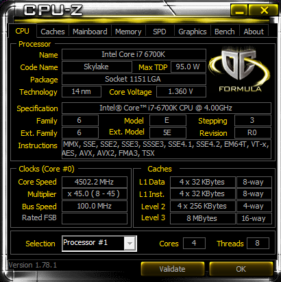 Selbst bei dem Versuch auf 4,5 GHz stabil zu takten muss ich die Spannung auf 1.45V hochdrehen.