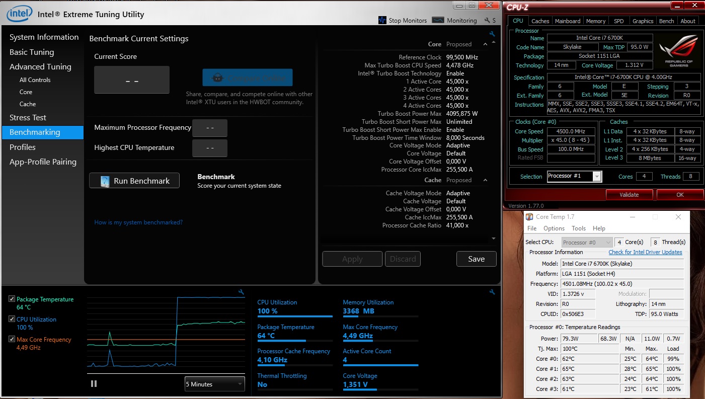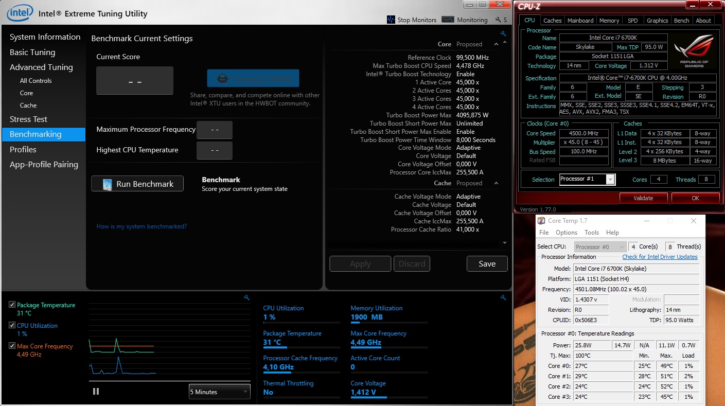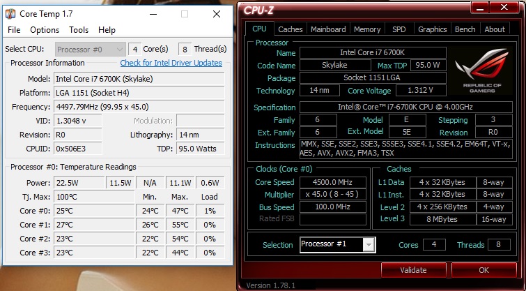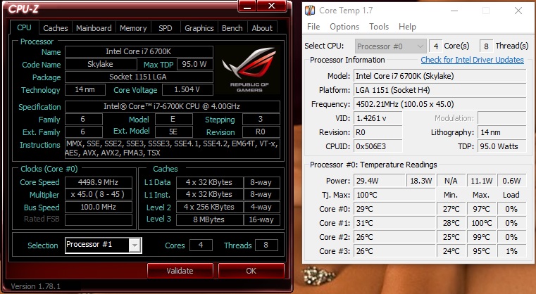 Ich habe meinen 6700K sehr früh geköpft, weil ich die hohen Temperaturen am Prozessor gar nicht sehen kann. Wegen der Spannung kann ich dir nur mein bescheidenes System als Beispiel geben.