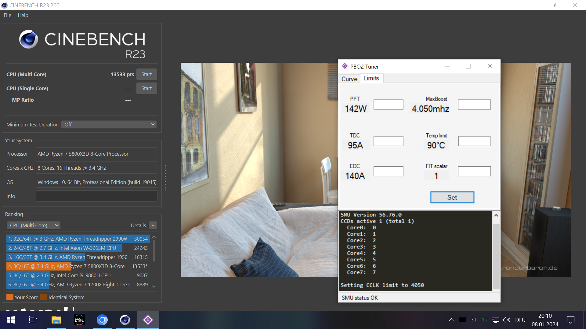 Emulierter 5700X3D mit 4050 MHz All Core im CB23