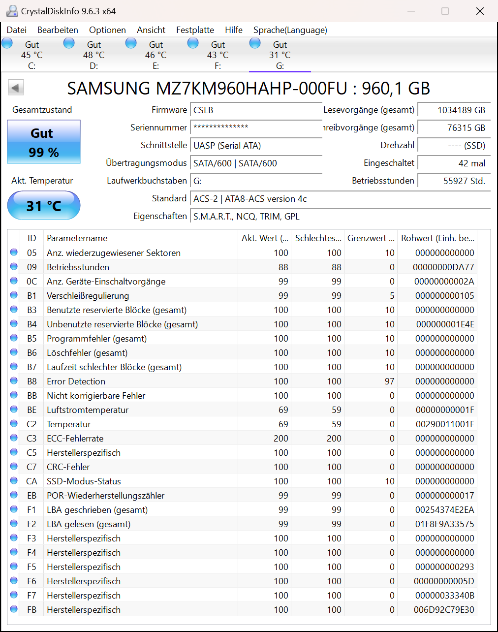 | Samsung | SM863 | 960 | unbekannt | Link | |