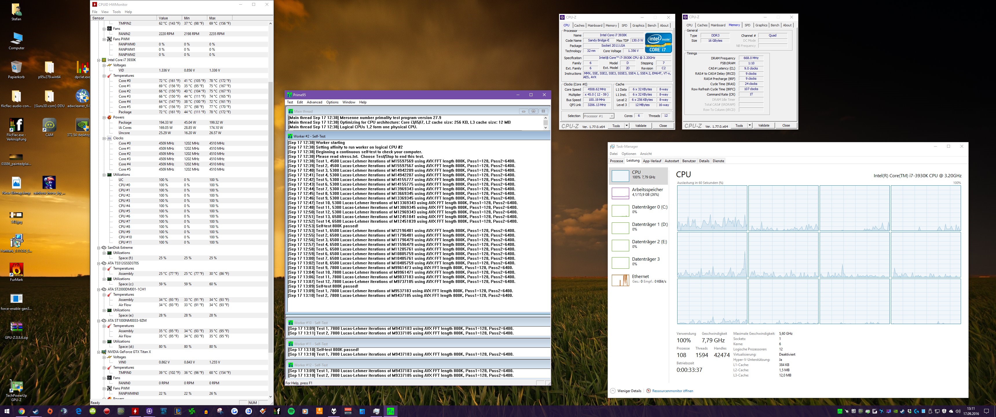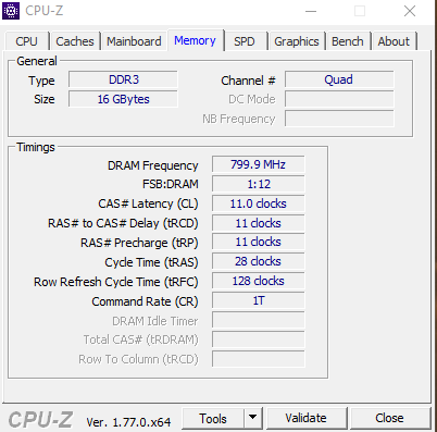 Ram: 16 GB DDR 3 2400 MHZ @ 1333 MHZ (Testweise runtergetaktet, läuft eh im Quadchannel daher ist die Geschwindigkeit hier eh egal)