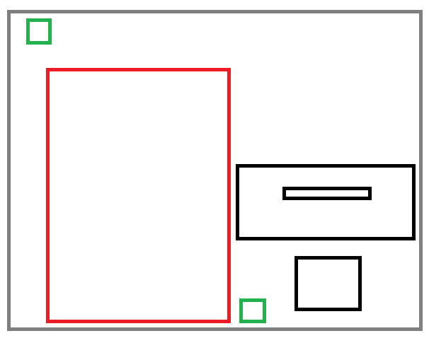Das Rote ist der Spielbereich, während das Schwarze mein Schreibtisch und Stuhl ist.