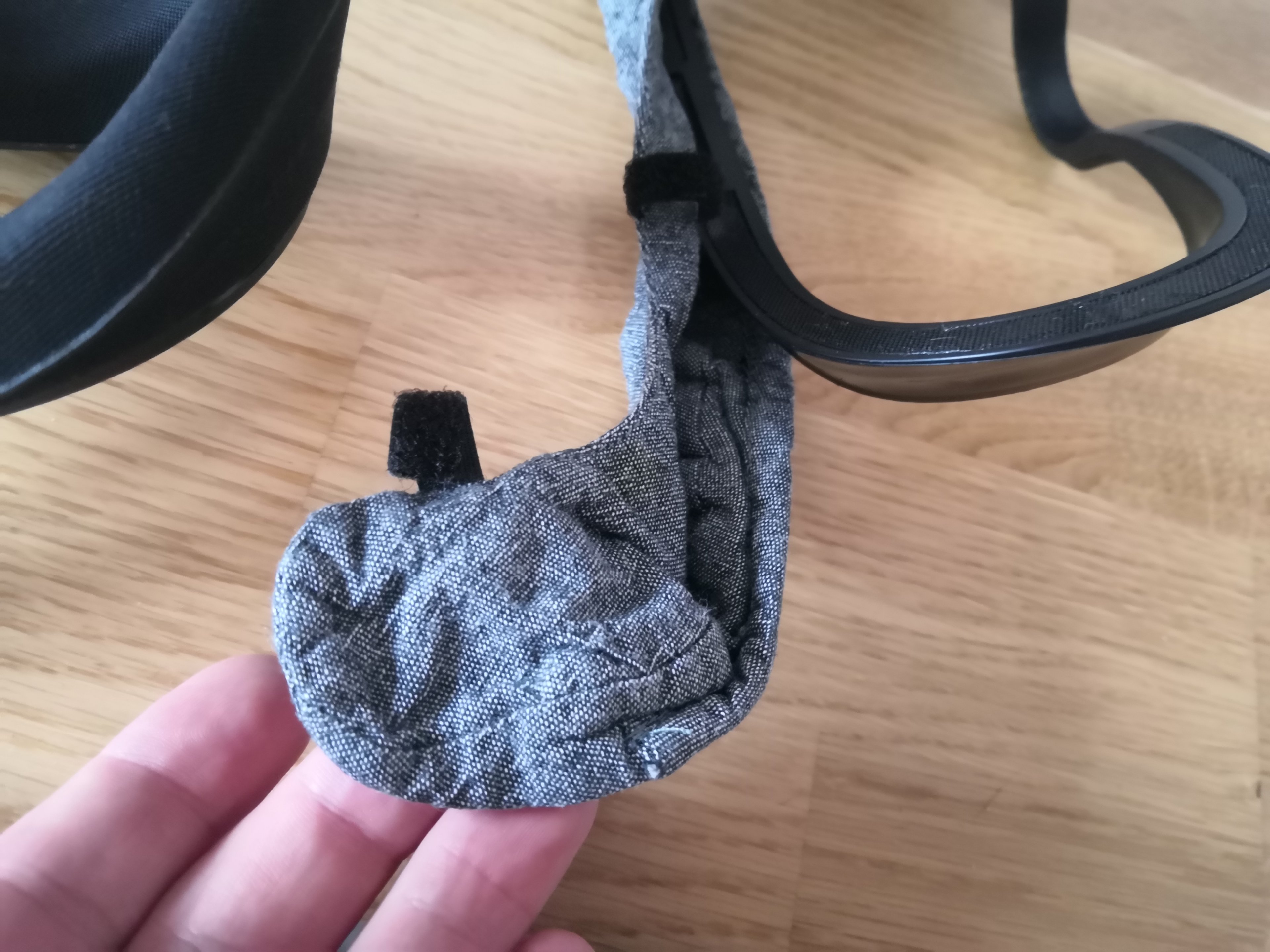 das war damals Pain in the Ass die aufzuziehen... man musste sie mit Laschen ZWISCHEN dem Klett von Brille und Schaumstoff befestigen, das verrutscht ständig, war gefühlt immer zu klein...