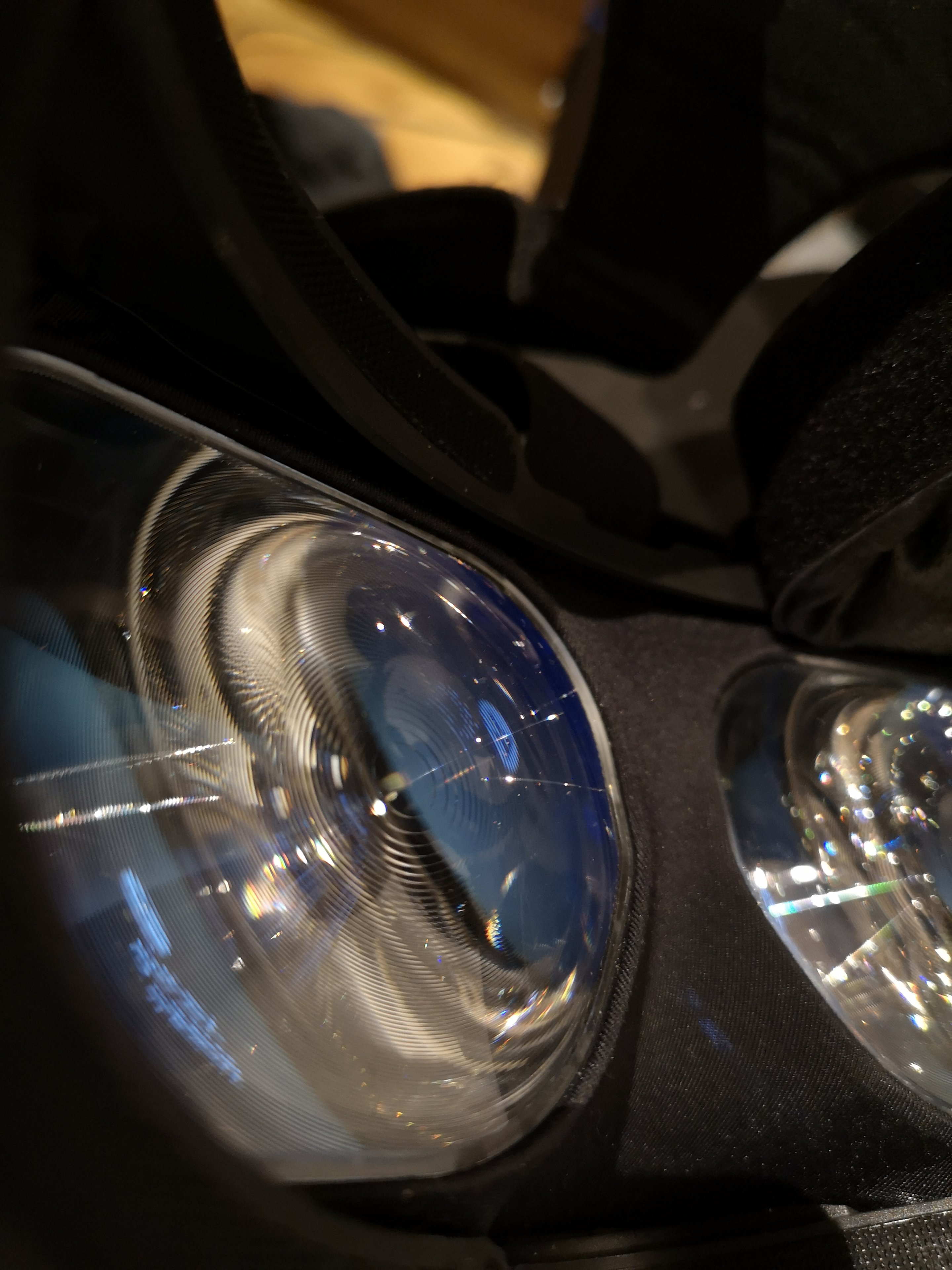 Was es auch sein könnte ist die Fassung in der die linsen sitzen, da ist ca en 2mm hoher Rand um die linsen. Vll nehme ich den wahr, aus dem Bereich etwa kommt auch die sichtstörung. Ich lade mal en bild hoch, ist bei euch der Rand um die linsen auch ca 2mm hoch?