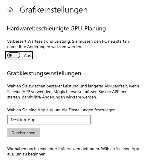 Habt ihr mal das neue hardware accelerated gpu scheduling in Windows 10 getestet ? Ich hab das heute aktiviert und massiv mehr Frames mit der pimax in iracing. Ich hatte immer das Problem das meine 2080ti mit der pimax nur bis ca 65% auslasten konnte, darüber gingen die Frames runter. Mit dem gpu catalyst aus pitool konnte ich zwar die Last und Leistung erhöhen aber es waren dann so heftige tickler drinn das es nicht Spielbar war. Jetzt das in Windows aktiviert und dann noch im pitool catalyst auf 2.0 Funktionen ohne tickler oder Fehler und meine gpu Auslastung ist teilweise wieder über 90 % und eben die 20 bis 30 % mehr Frames wie wenn gpu nur 60 % auslastung hat.
