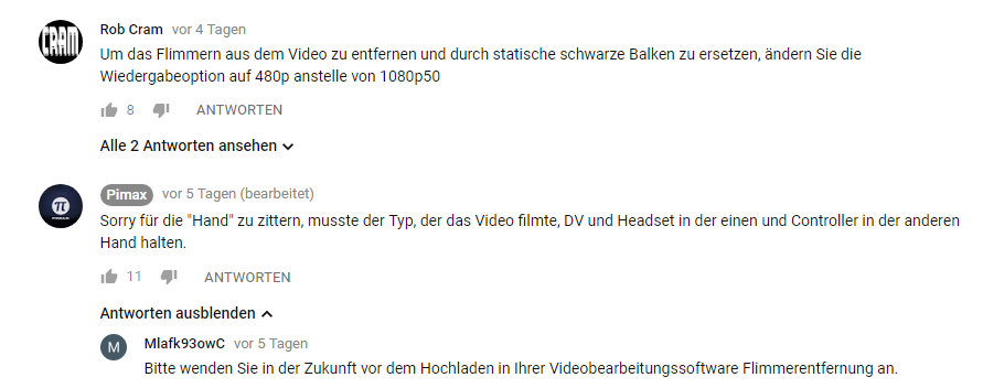 Da darf die Pimax sehr gerne ansetzen. Wenn der Sweetspot groß genug (Also dass man quasi kaum merkt das es einen gibt) wird, nähern wir uns langsam aber sicher dem Rundum-Sorglos-Paket in Sachen VR. Die sollen mal hinne machen, ich erwische mich öfter mal bei Gedankenspielen zur Anschaffung der Vive Pro. Zum Glück ist das Wireless-Modul noch nicht kaufbar, sonst hätte ich eventuell sogar schon nachgegeben...