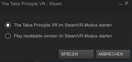 Was muss ich da eigentlich auswählen wenn ich "The Talos Principle VR" starte?