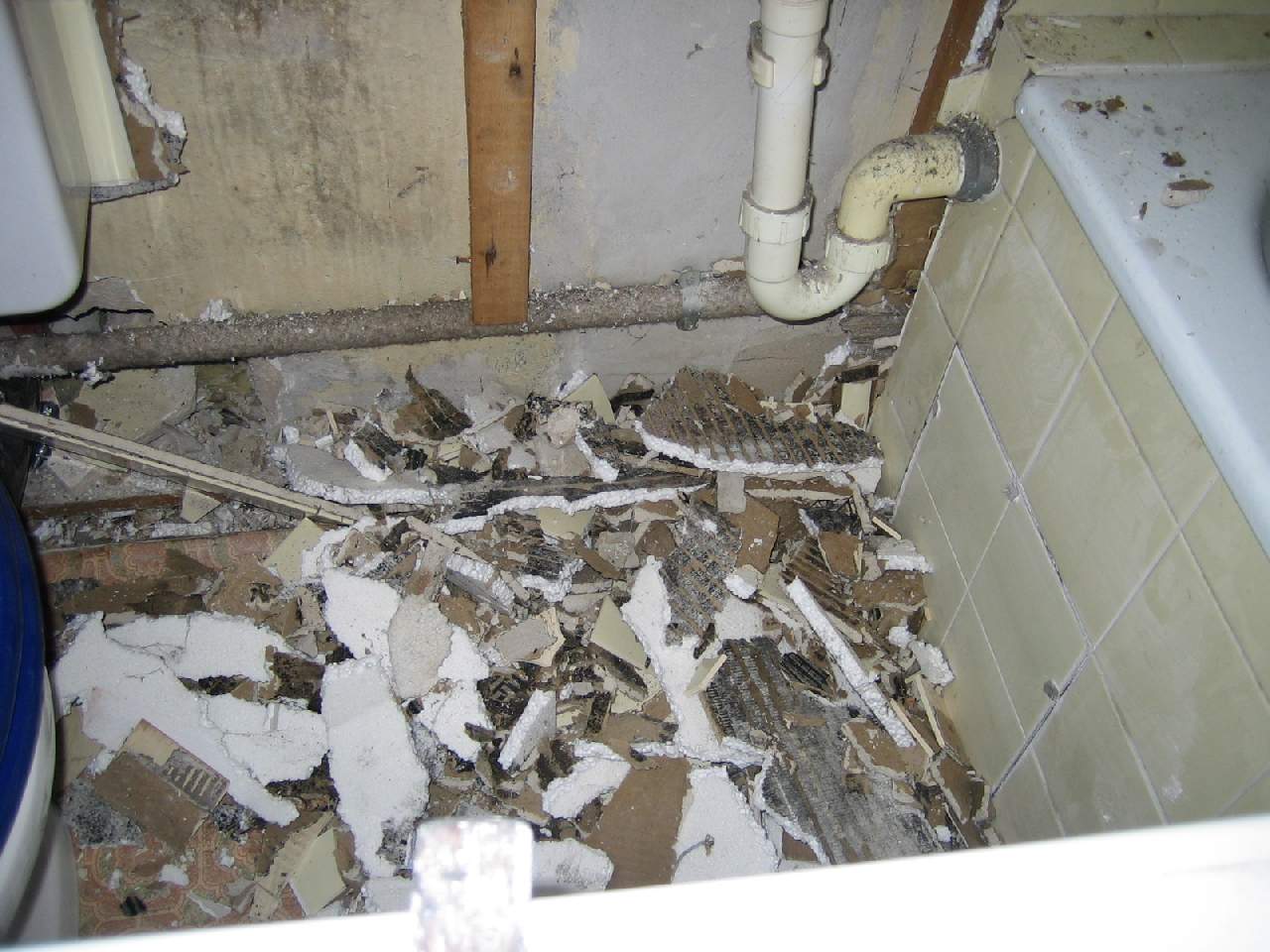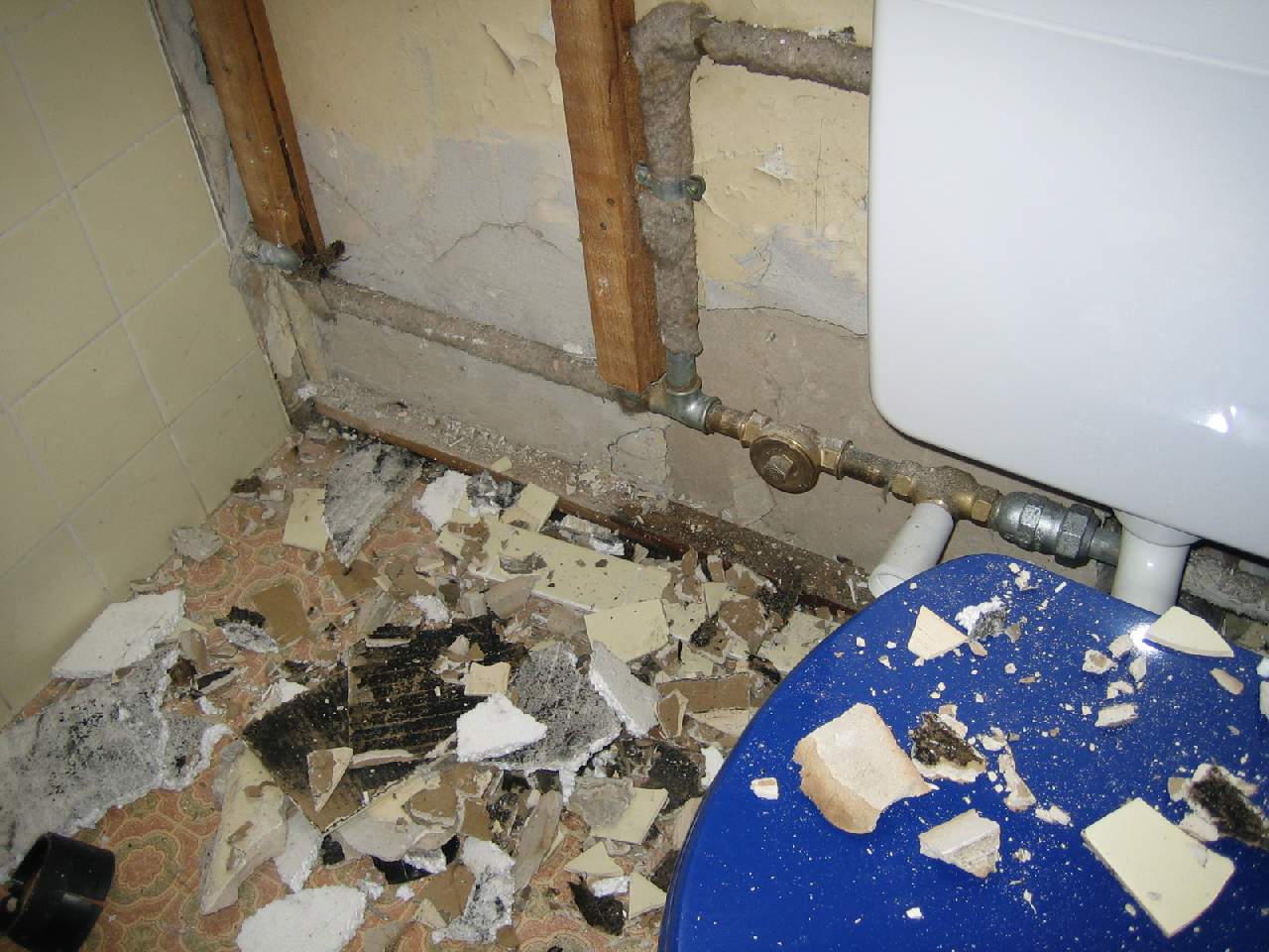 Schon vor 2 Wochen waren die Handwerker das, weil mein Abwasserrohr undicht war und haben mir die Wand im Bad aufgekloppt. Damals meinte schon einer, da könnte noch mehr feucht und vergammelt sein. Aber bei der Gelegenheit wollten sie mir dann eine Sanierung des Bads und eine Mieterhöhung aufdrücken. Pustekuchen!