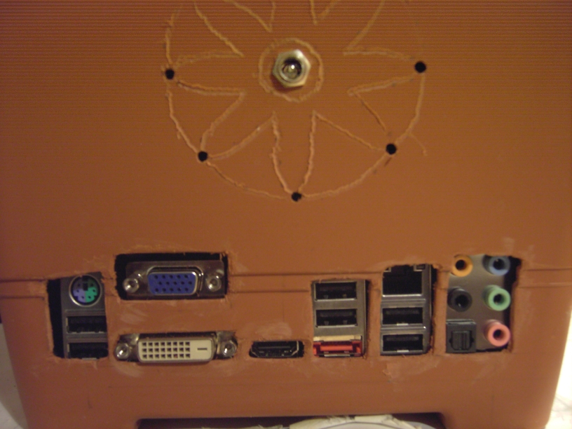 5) Der Topf verläuft etwas schräg, weswegen ich schon gespannt bin, wie das MB dadran passt. Näheres dazu werde ich aber wohl erst sehen können, wenn ich ein passendes Loch in den Topf gekriegt habe, womit ich auch zum letzten Problem komme...