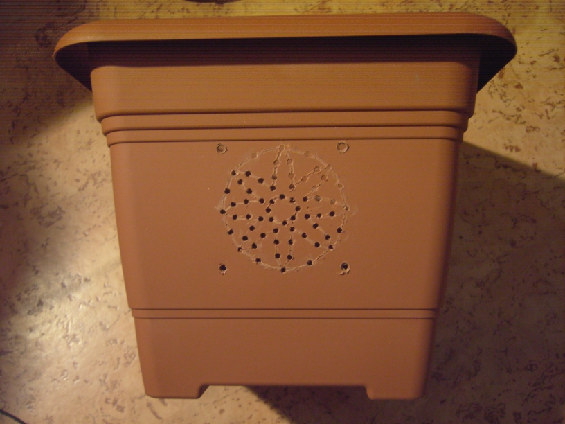 Aus diesem Grunde soll der PC an meinem Bett stehen, sich da aber irgendwie ins Gesamtbild einfügen damit es auch nach was aussieht. Da das Bett wiederum in der etwas grünen Ecke des Zimmers steht, kam mir die Idee, dass der PC selbst auch ein Heim eines kleinen, ruhigen Zeitgenossen werden könnte, kurz gesagt also: Das Ding in einem Blumentopf versteckt werden soll.